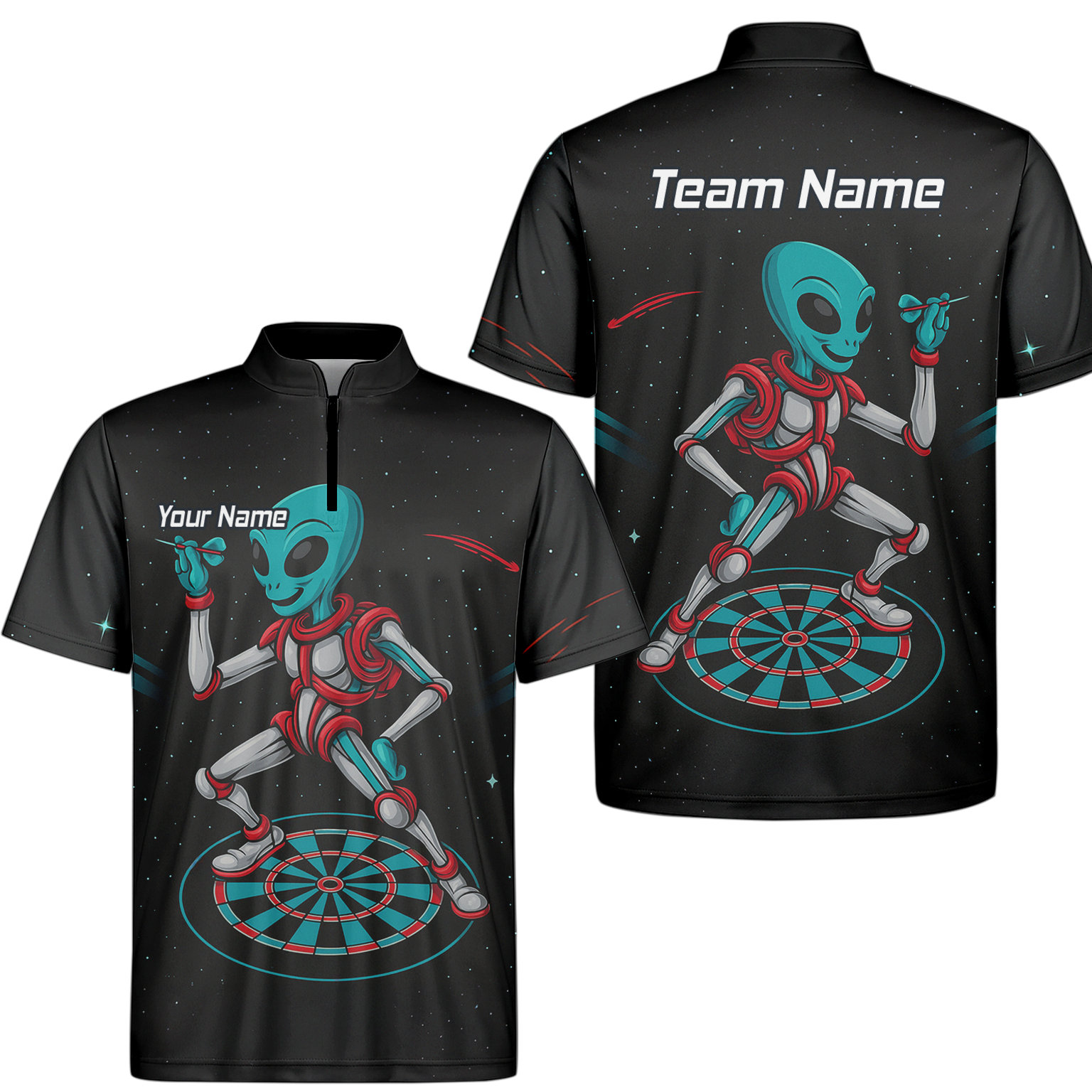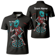 Personalised Black Alien Space Darts Polo Shirt Teal Red For Men G2888