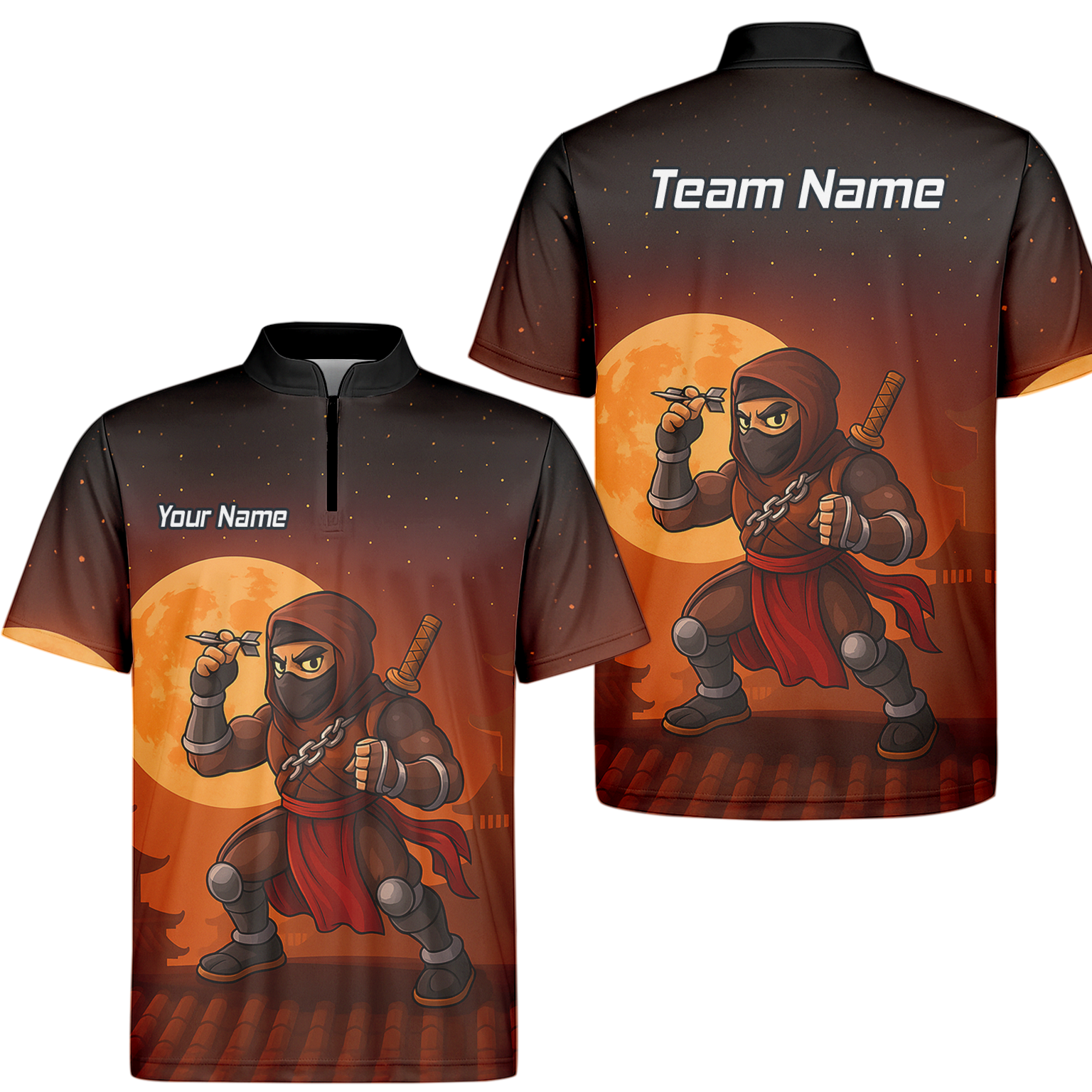 Personalised Ninja Moon Darts Polo Shirt Brown Black For Men E2506