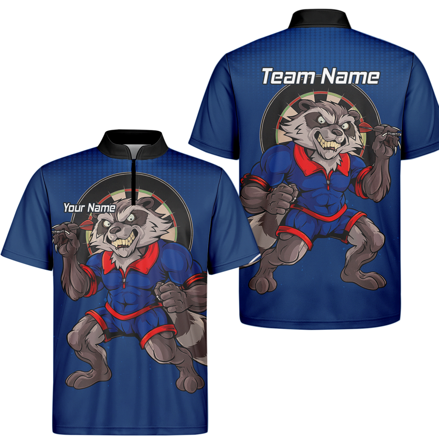 Personalised Raccoon Darts Polo Shirt Blue Red For Men Custom Name Team Y3391