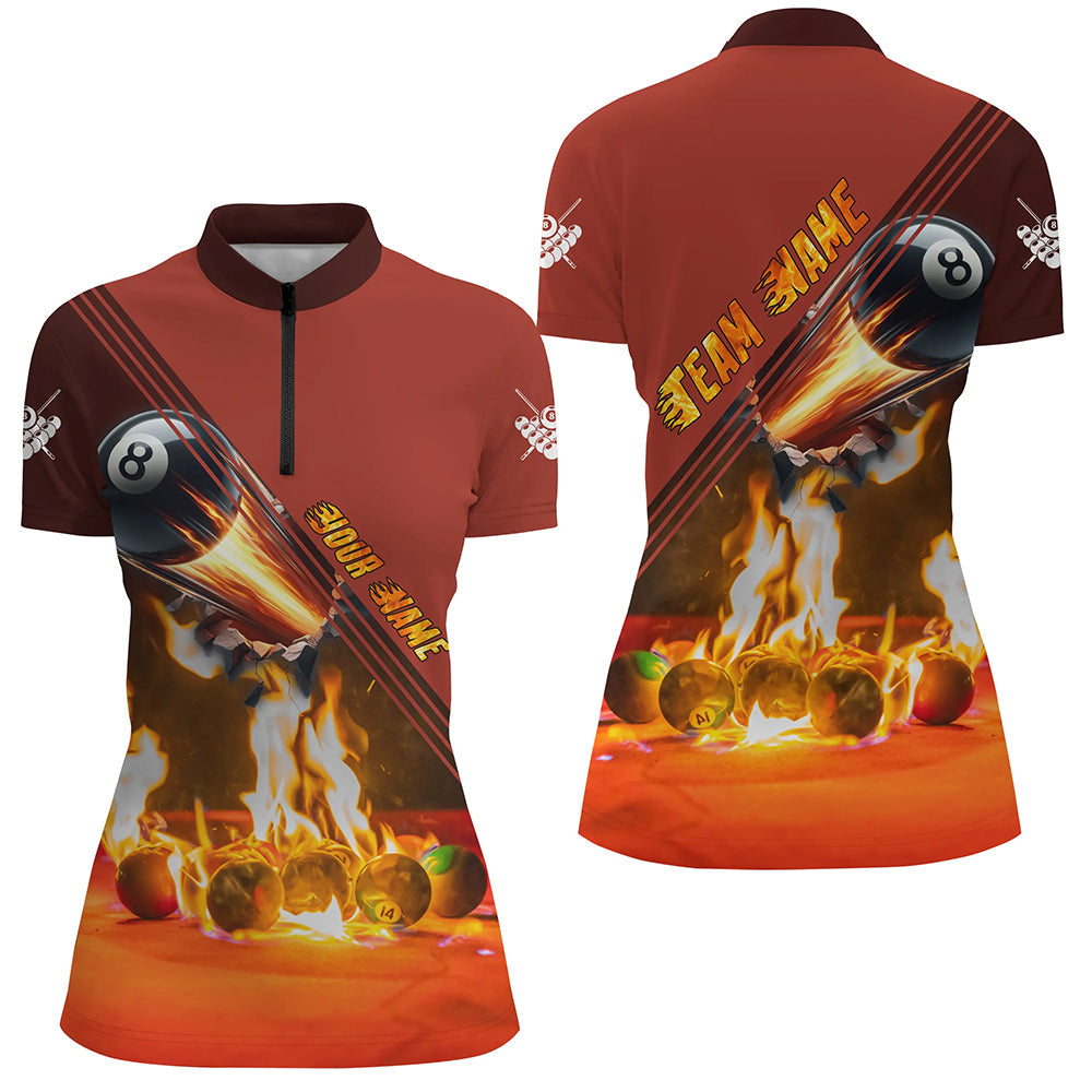 Women's 3D Fire Billiard 8 Ball Quarter-Zip Shirt T1206