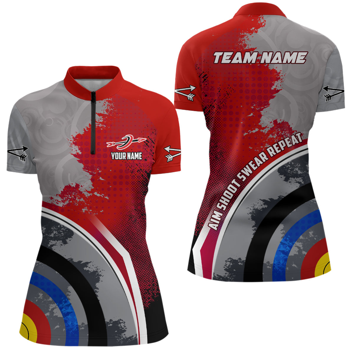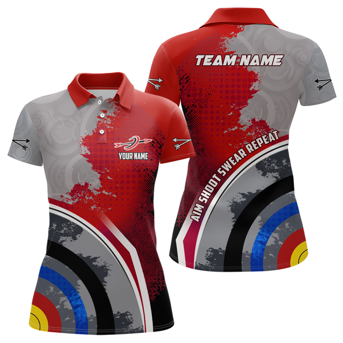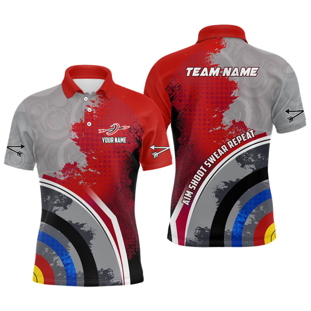 Personalised Aim Shoot Swear Repeat Archery Polo Shirts For Men and Women, Red Grey 3D Target Archery Shirts V0706