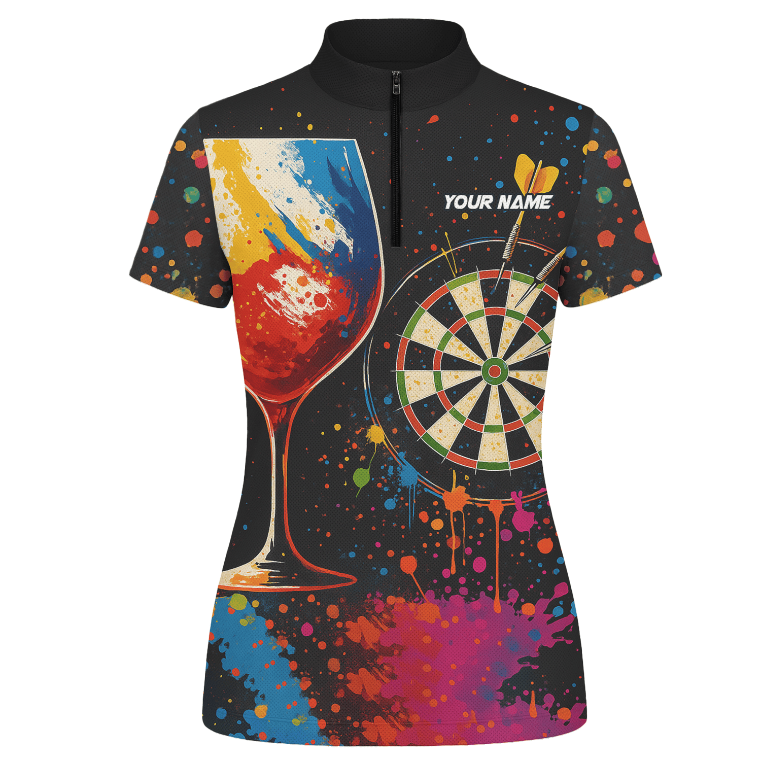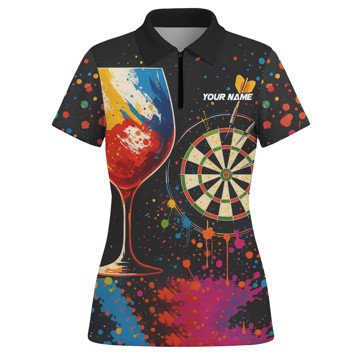 Personalized Colorful Paint Splatter Wine Glass Dart Polo Shirt For Women Q0247