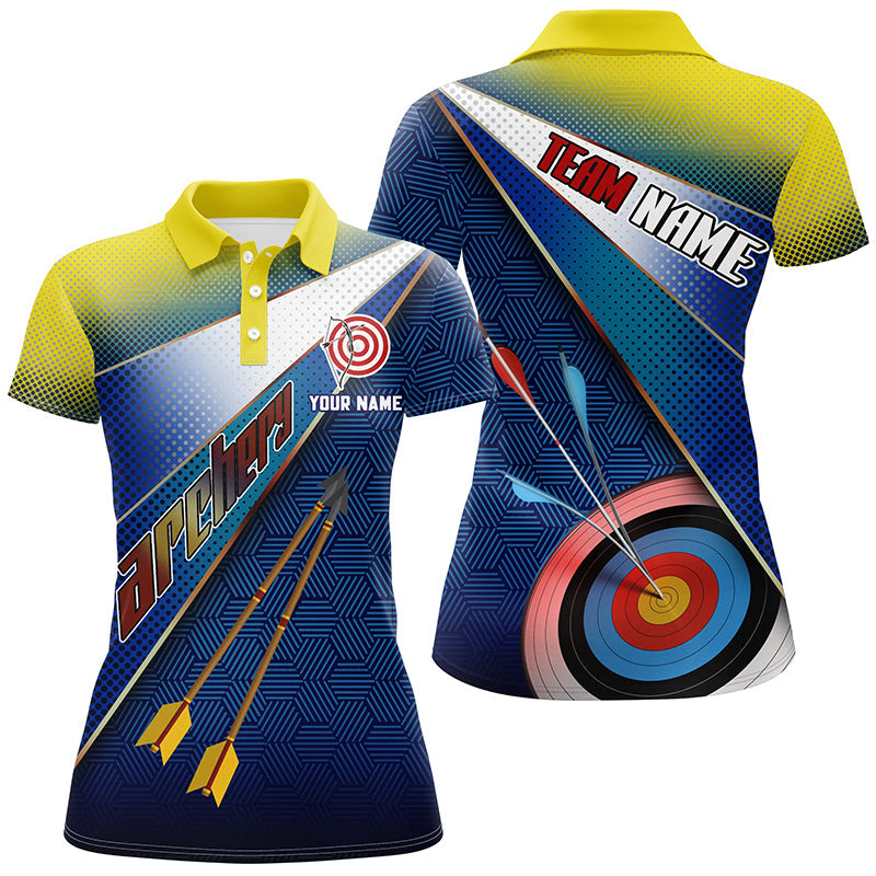 Personalised Yellow Blue 3D Target Archery Polo Shirts For Men and Women, Custom Arrows Archery Team Shirts V0658