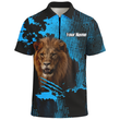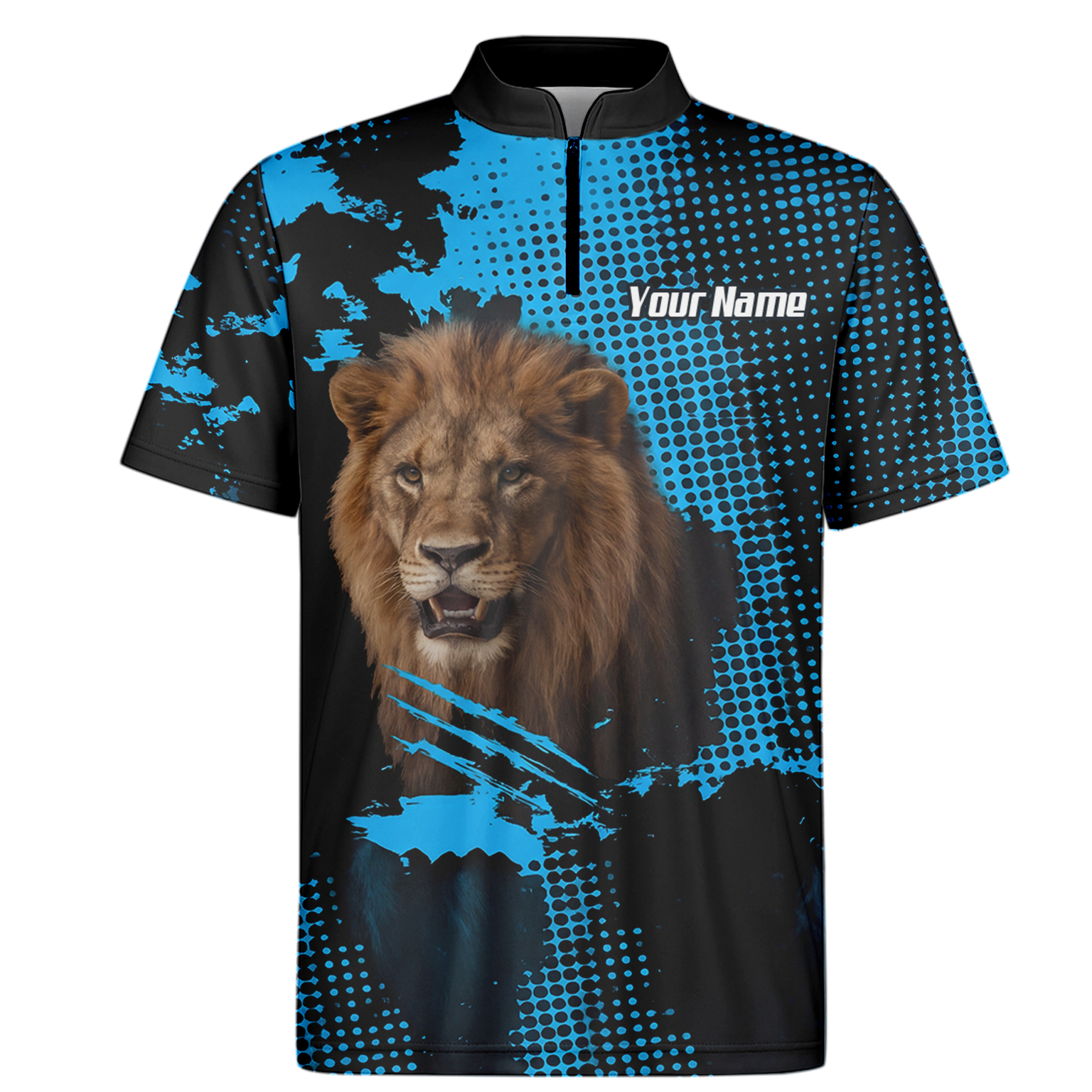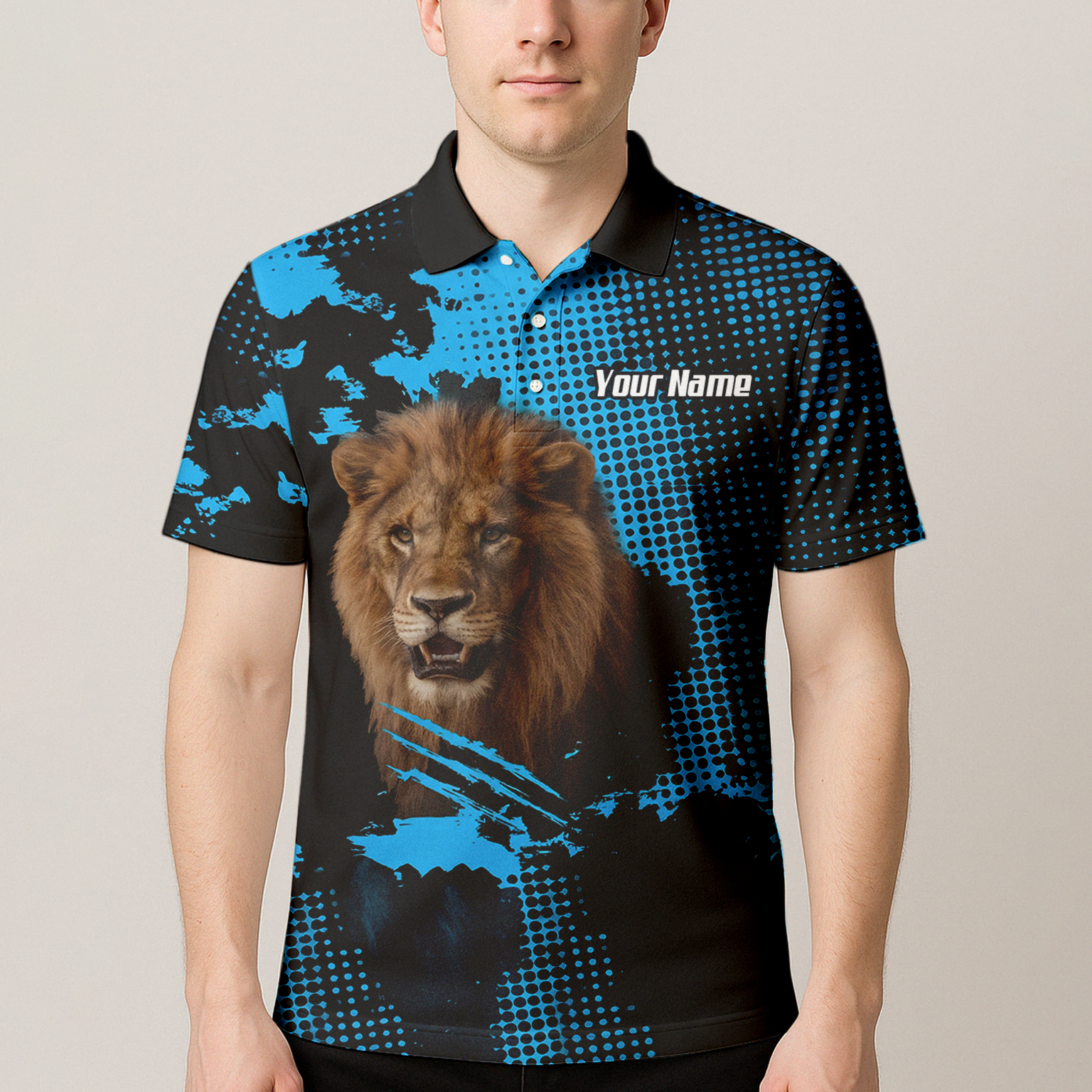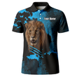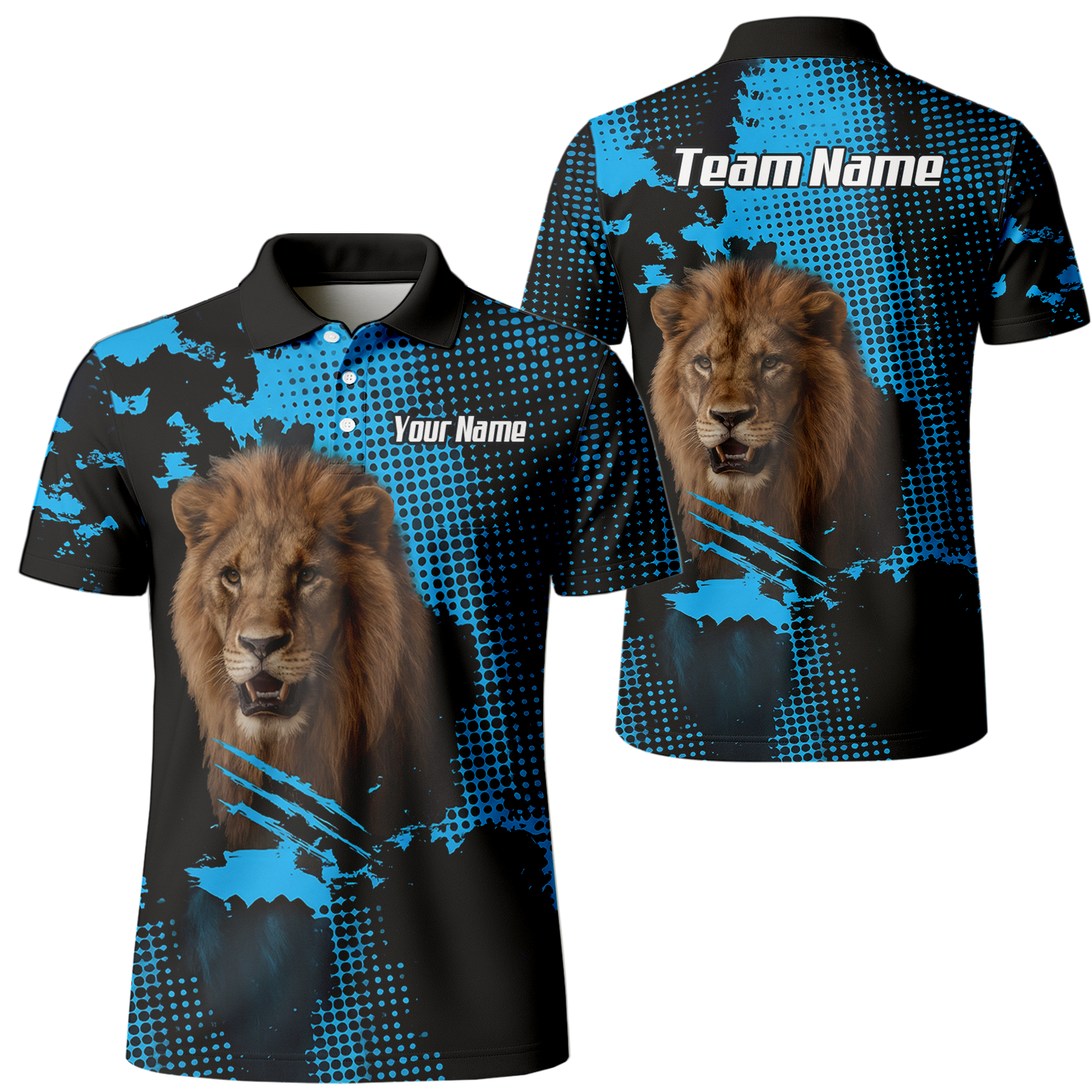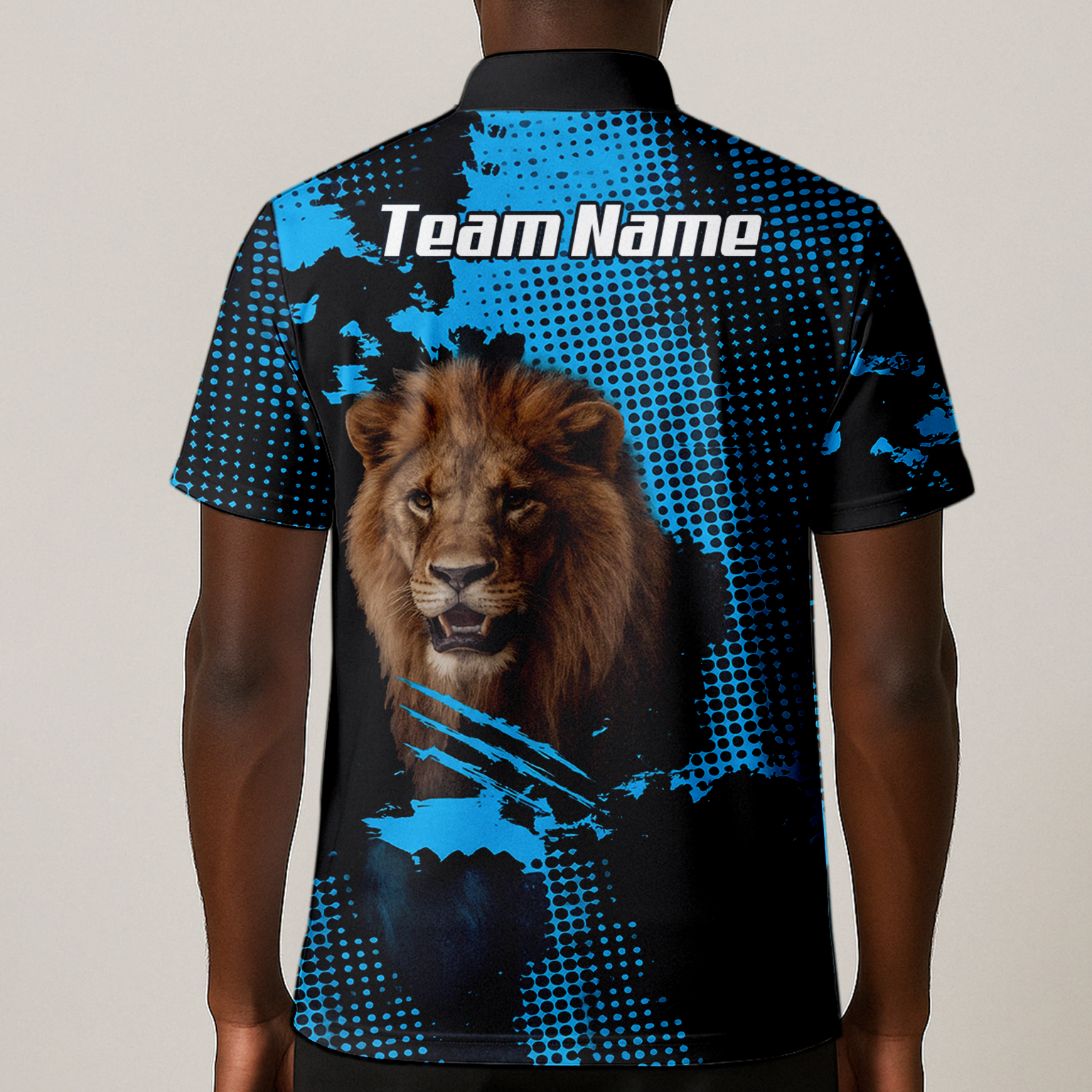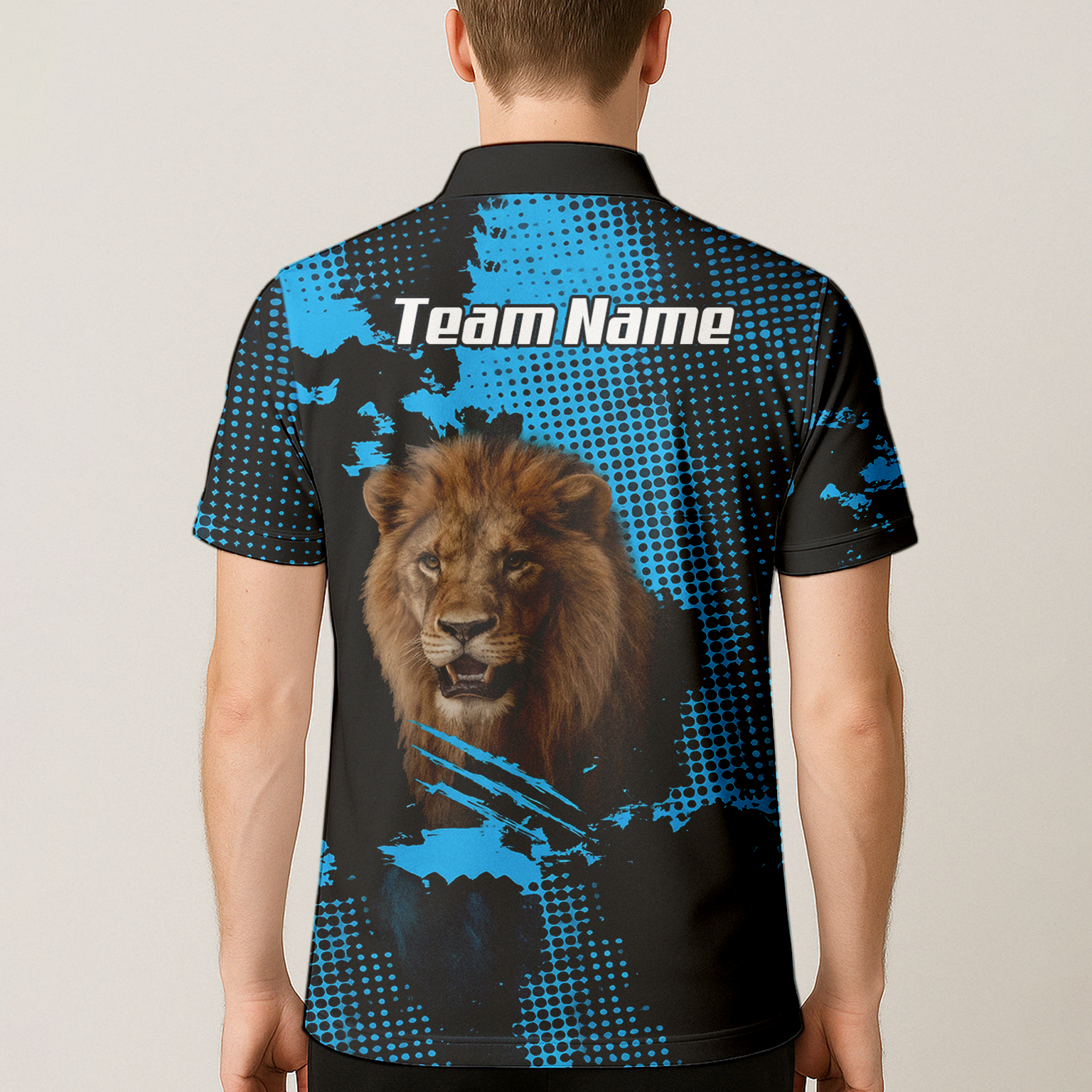 Personalised Roaring Lion Darts Polo Shirt Blue Black Grunge For Men VB1720