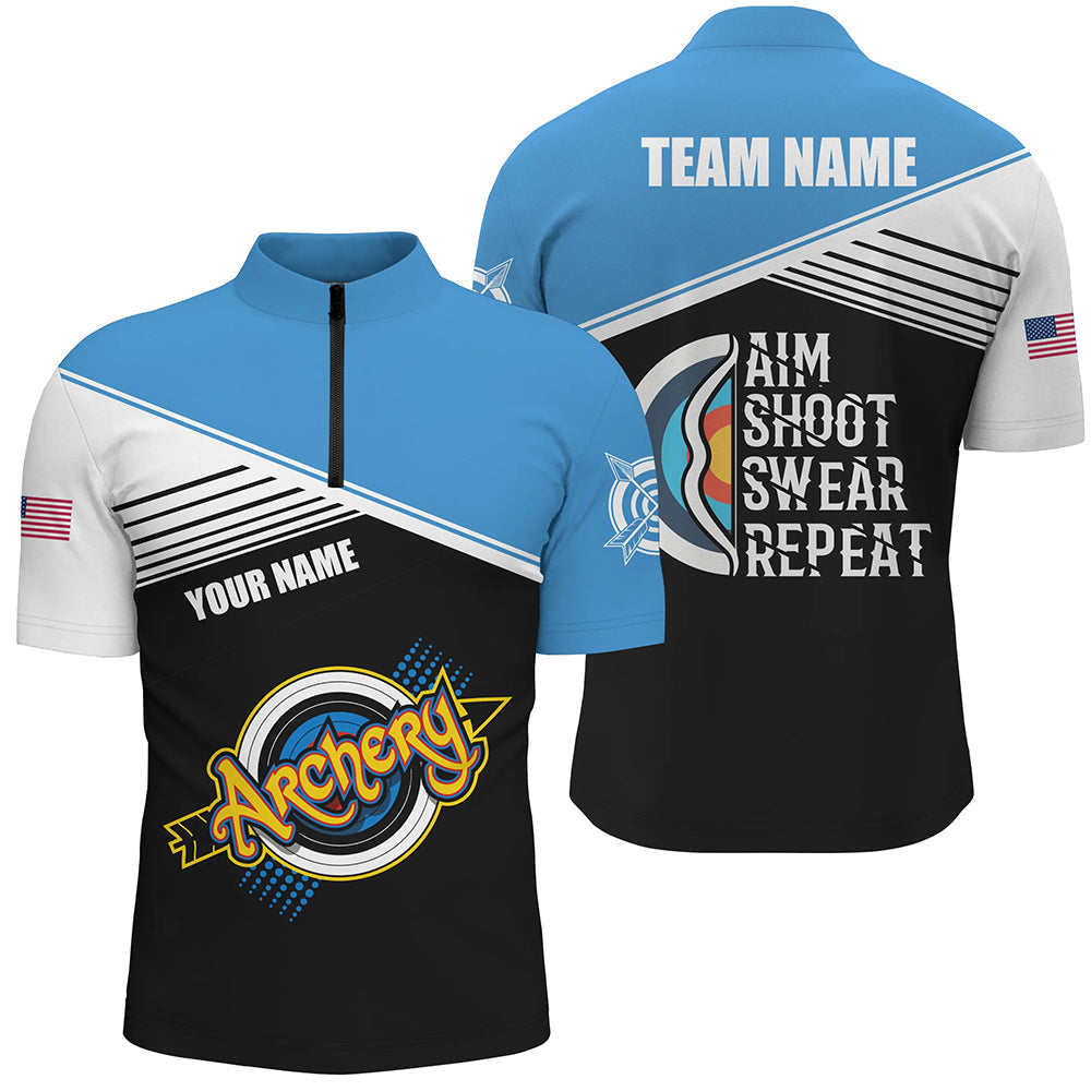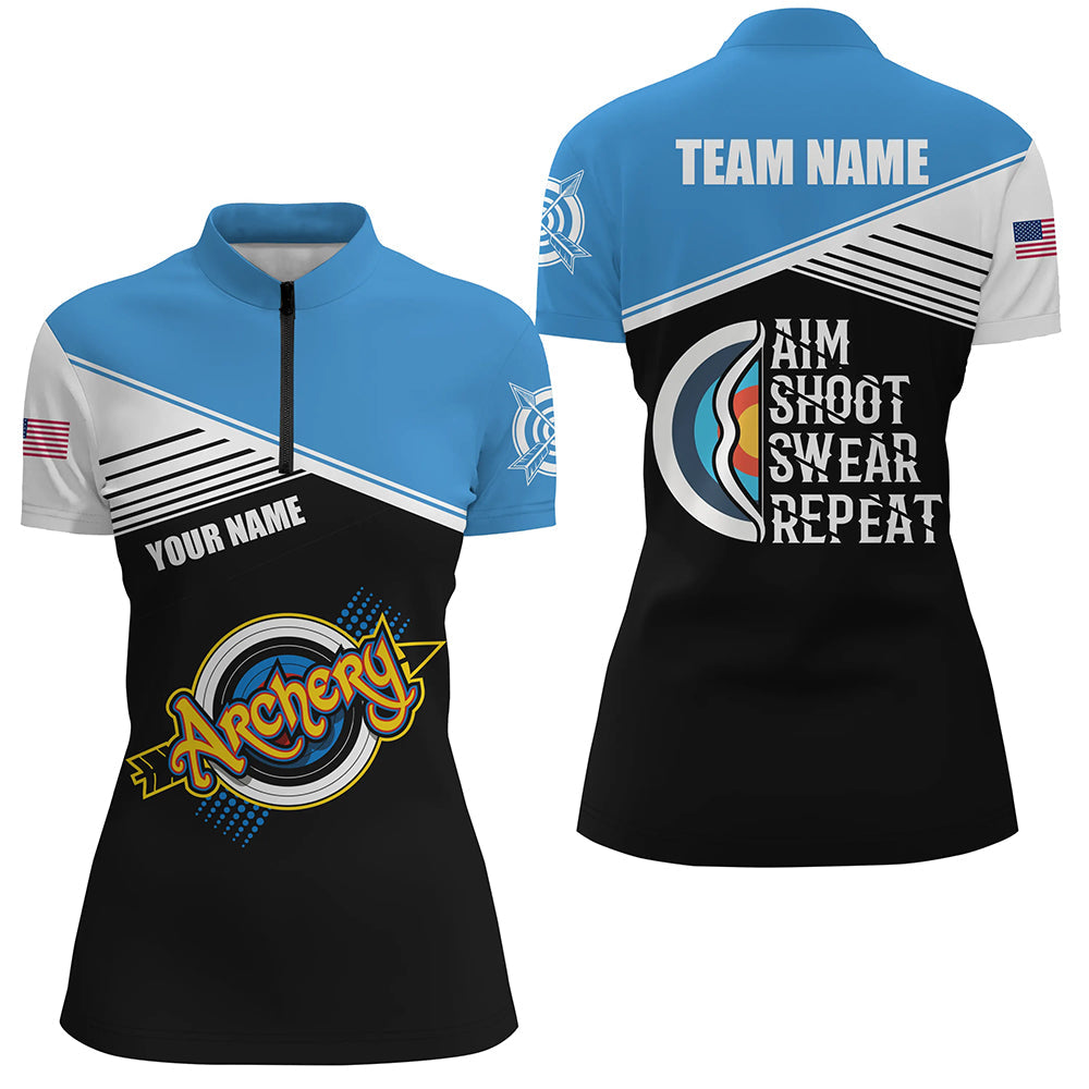 Archery Aim Shoot Swear Repeat Personalised Men and Women Polo Shirts Custom Funny Saying Archery Shirts T0463