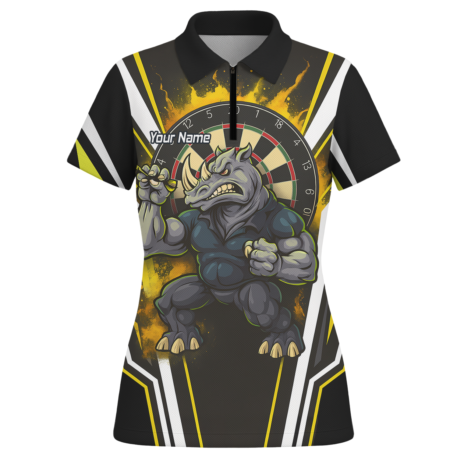 Custom Aggressive Rhino Darts Polo Shirt Black Gold White For Women U9140
