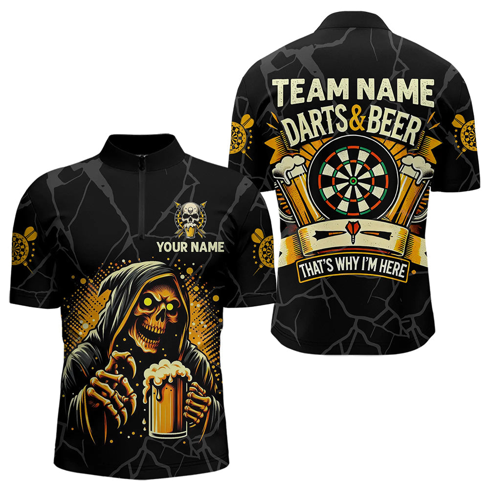 Darts And Beer That's Why I'm Here Custom Death Skeleton Men Darts Shirts, Drinking Dart Jerseys T3461
