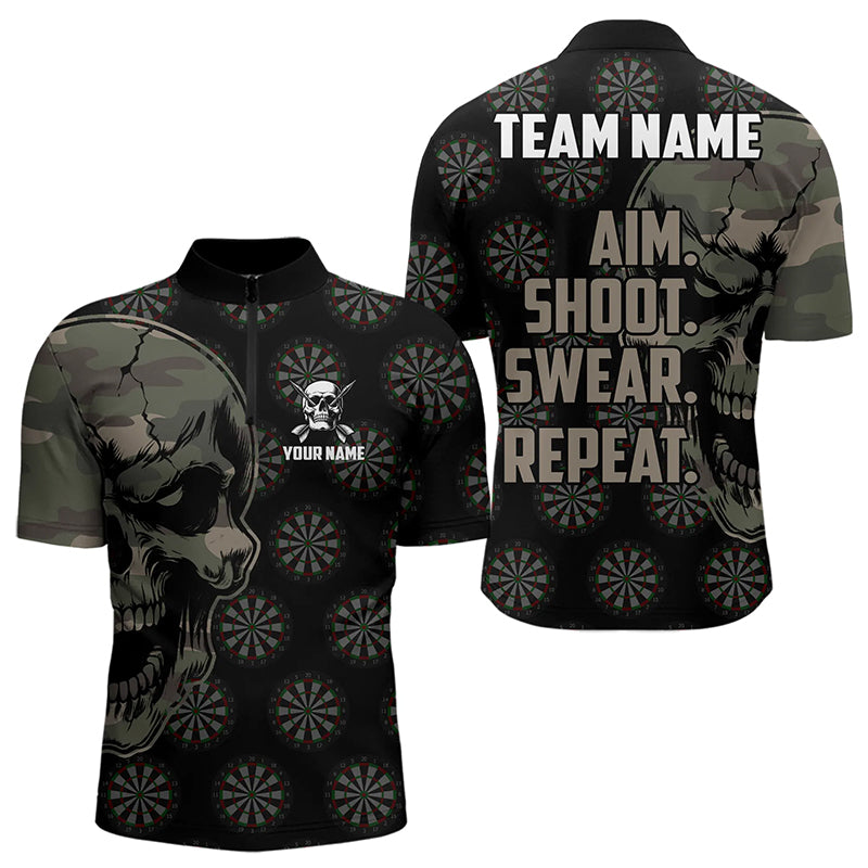 Funny Camo Darts Skull Aim Shoot Swear Repeat Custom Dart Shirts For Men, Vintage Dart Team Jerseys T3266