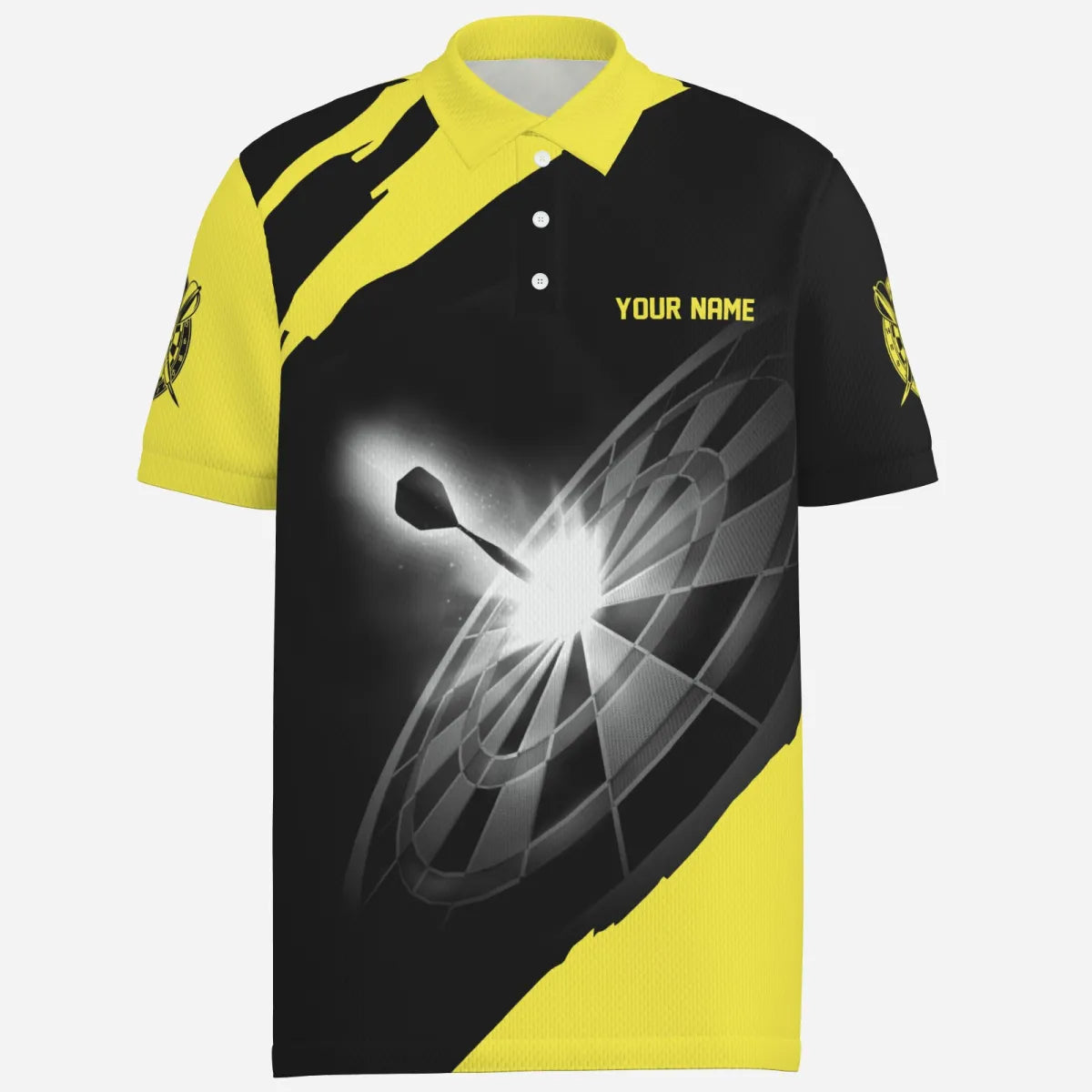 Personalised Black and Yellow Men's Darts Polo Shirt | Custom Dart Shirts for Men | Dart Jerseys L13695