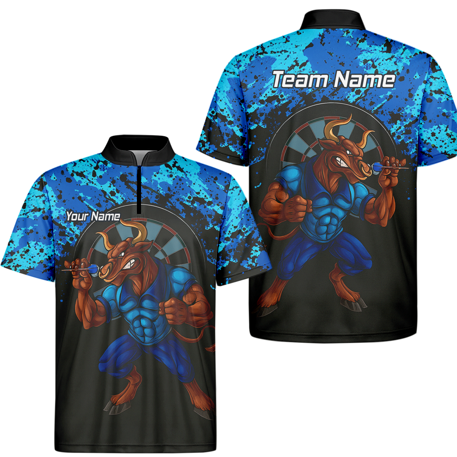 Personalised Bull Darts Polo Shirt Blue Black Splatter For Men Q5112