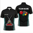 Personalised Crossed Cues Snooker Jersey Polo and Zipper for Men Custom Shirt Black Teal Grey P9916
