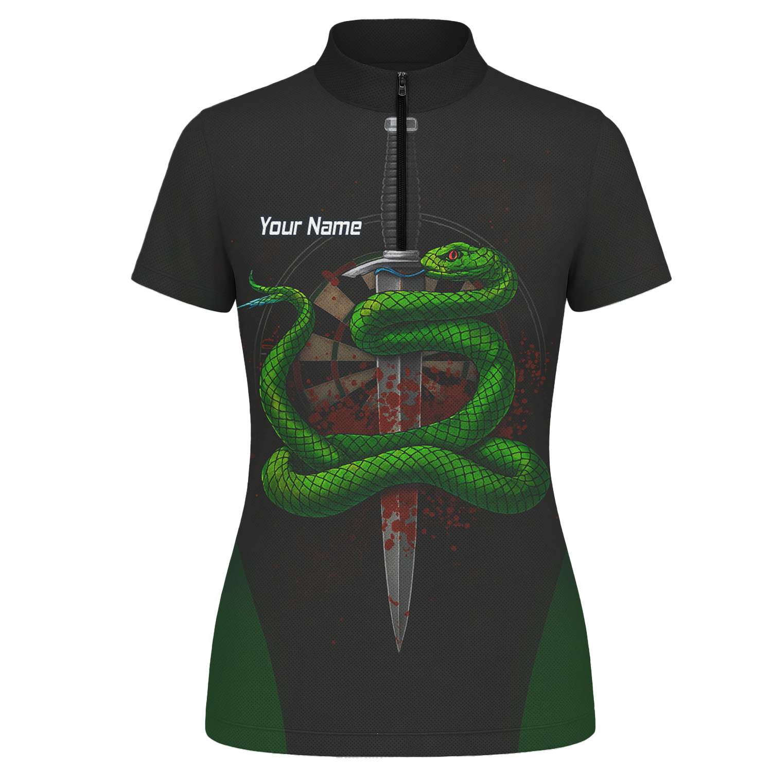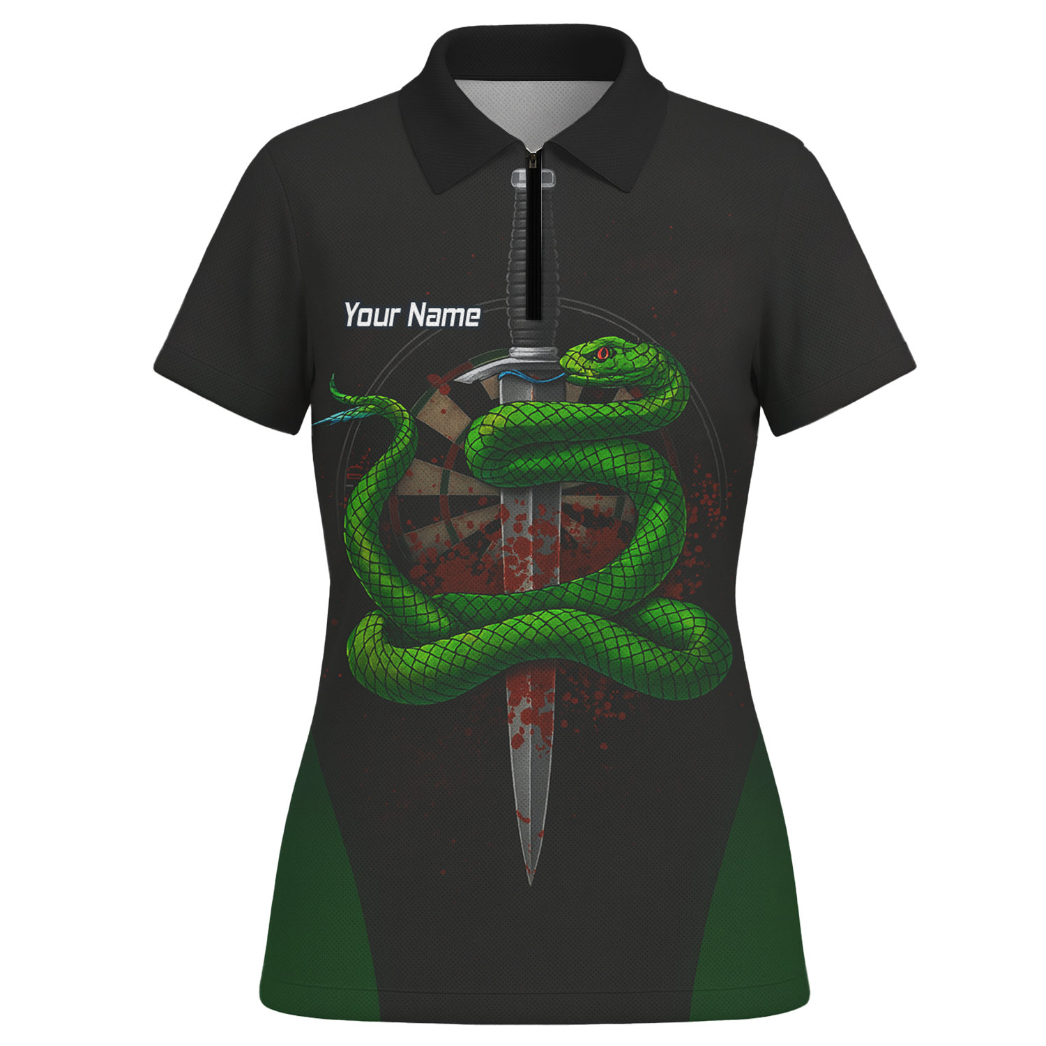 Personalised Green Snake Dagger Darts Polo Shirt Blood Splatter Black For Women G2717