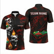 Personalised Grim Reaper Skull Snooker Jersey Polo and Zipper Red Black For Men M4696