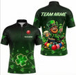 Personalised Irish Leprechaun Snooker Jersey Polo and Zipper Green Shamrock Shirt For Men N4838