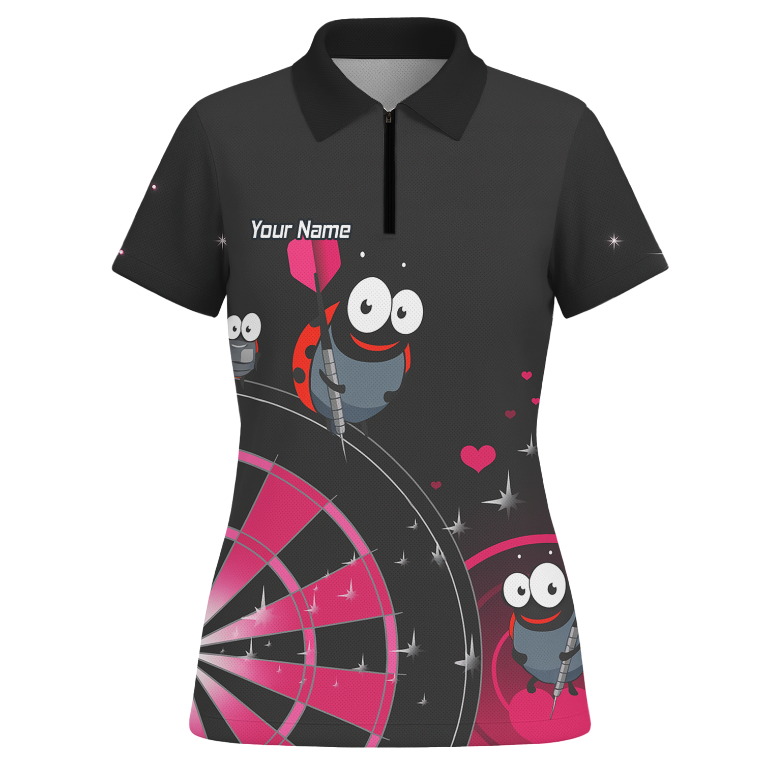 Personalised Ladybug Darts Polo Shirt Black Pink For Women E3635