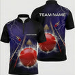 Personalised Lightning Snooker Jersey Polo and Zipper for Men Custom Name Electric Red Ball Shirt Purple Black H9371
