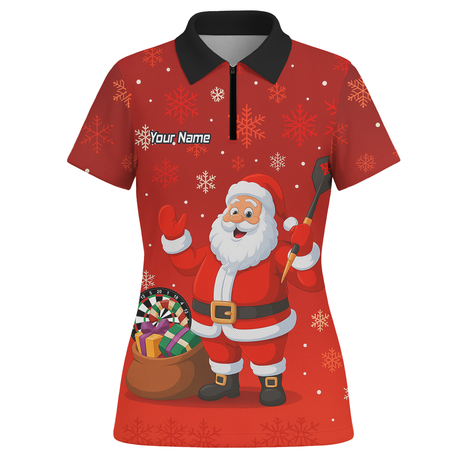 Personalised Santa Claus Christmas Darts Polo Shirt Red Snowflakes For Women X7938