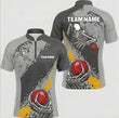 Personalised Skeleton Skull Snooker Jersey Polo and Zipper Grey Black Yellow For Men R7026