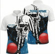 Personalised Skull Snooker Jersey Polo and Zipper White Blue Black For Men K8749