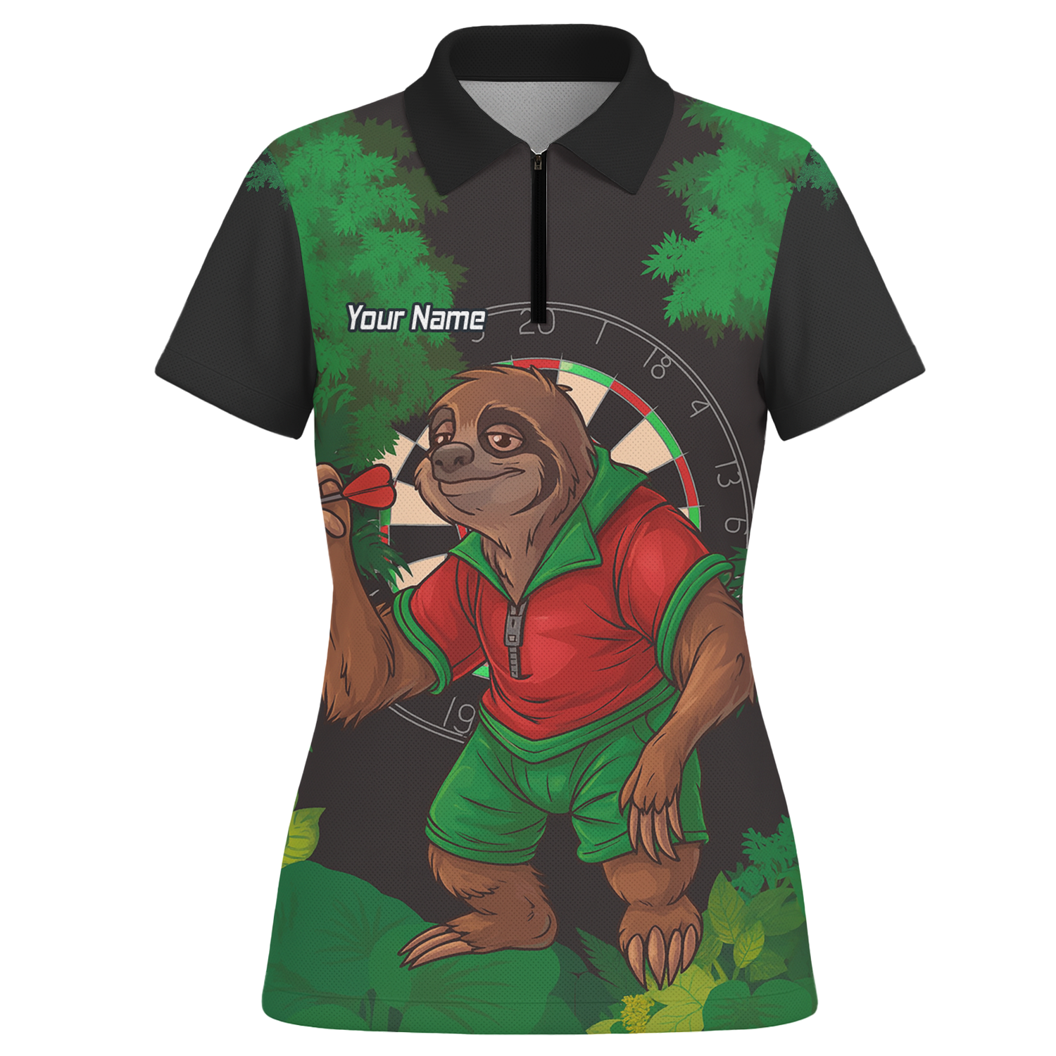 Personalised Sloth Jungle Dart Polo Shirt Black Green Red For Women K9408