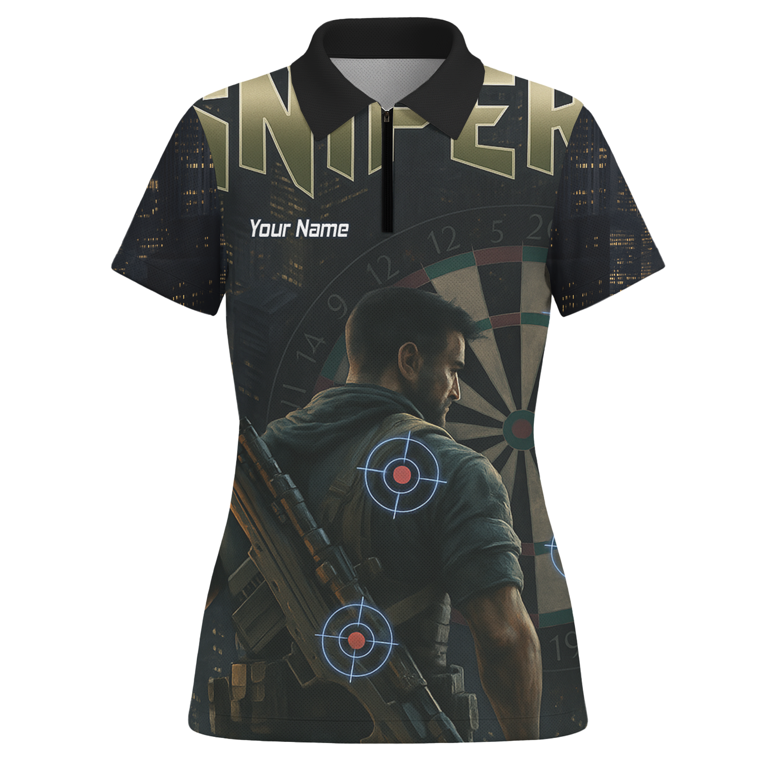 Personalised Sniper Tactical Dart Jersey Polo Shirt Black City Night For Women P5428