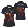 Personalised Taurus Bull Darts Polo Shirt Black Red Gold For Women M5020
