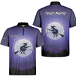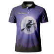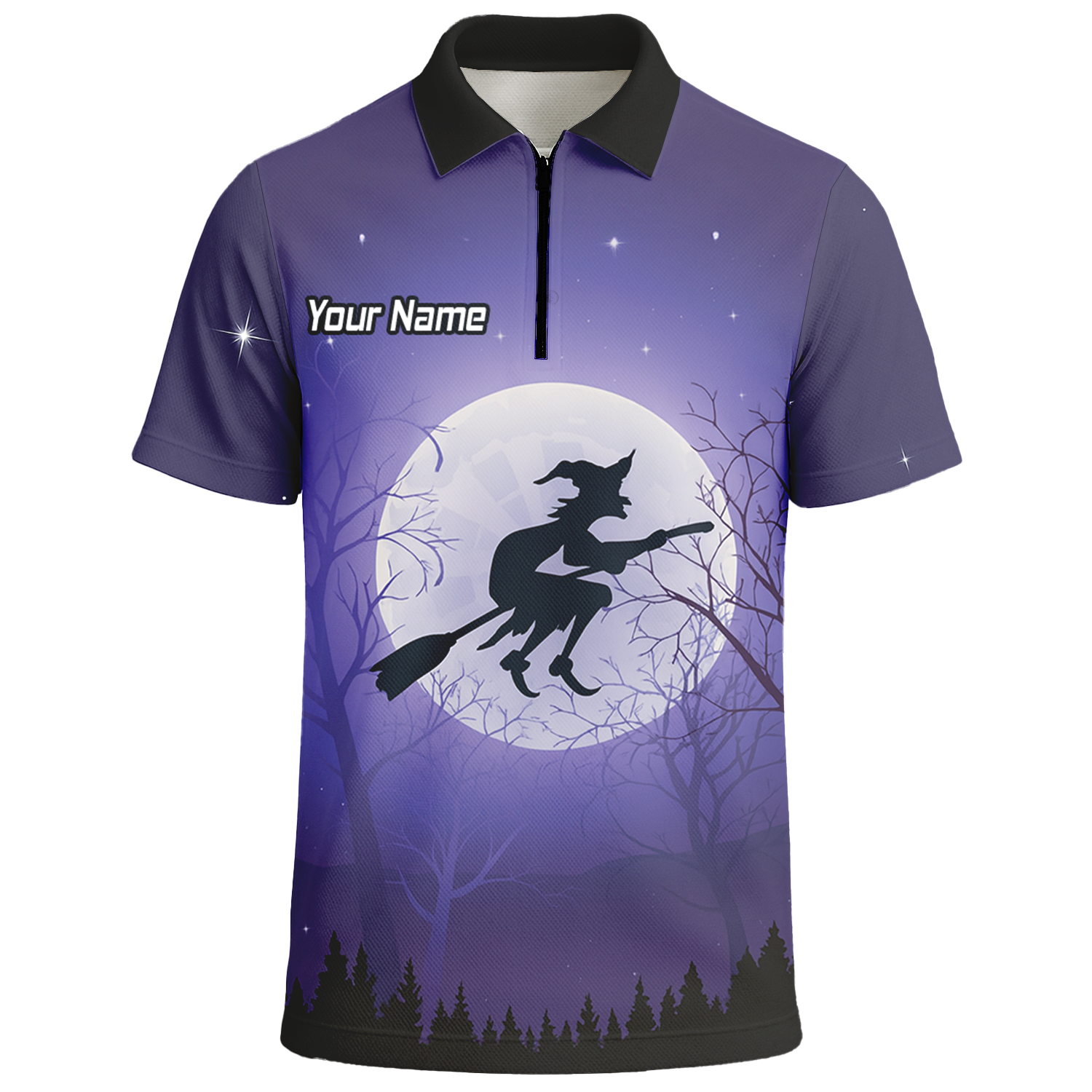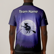 Personalised Witch Flying Moon Darts Polo Shirt Purple Black For Men J5877