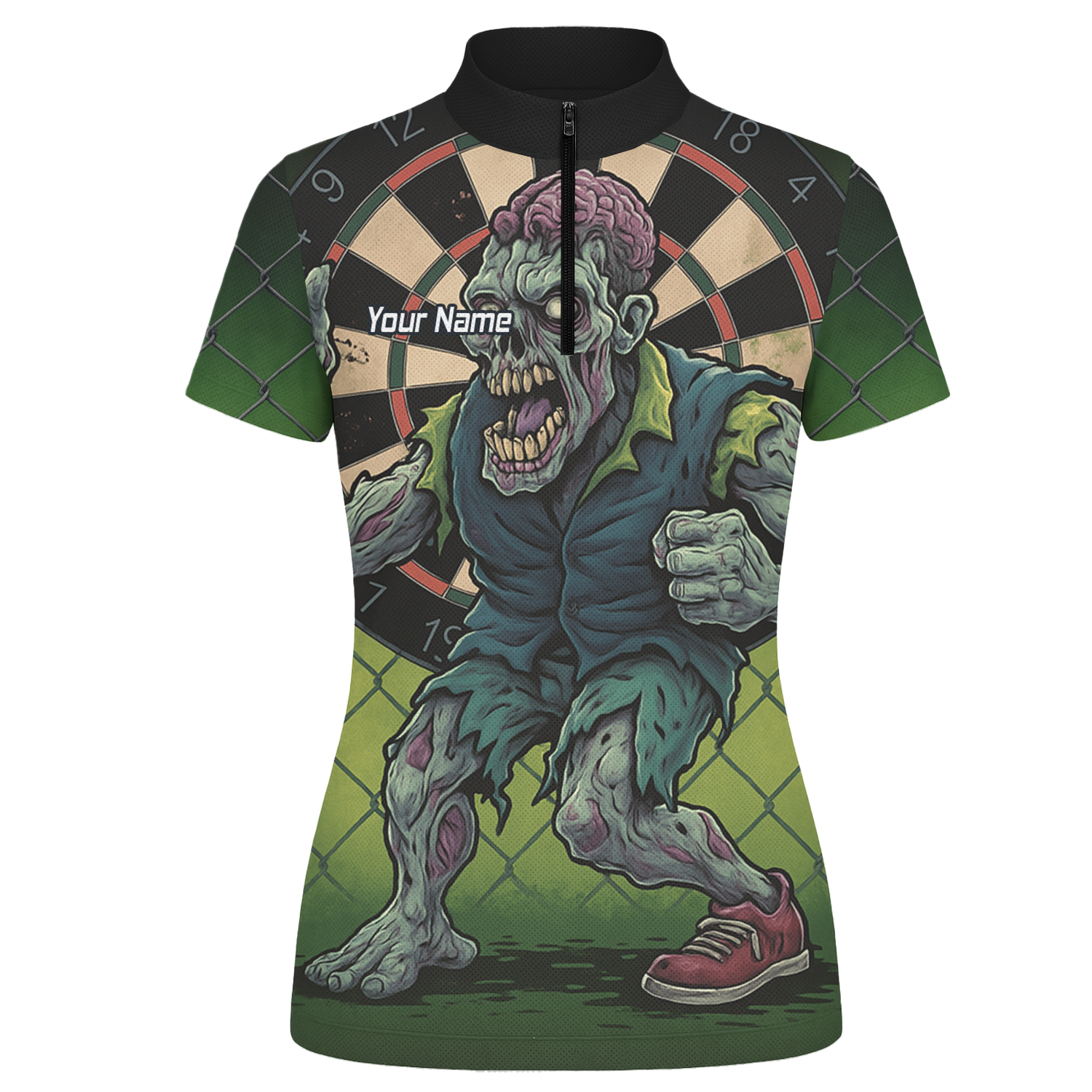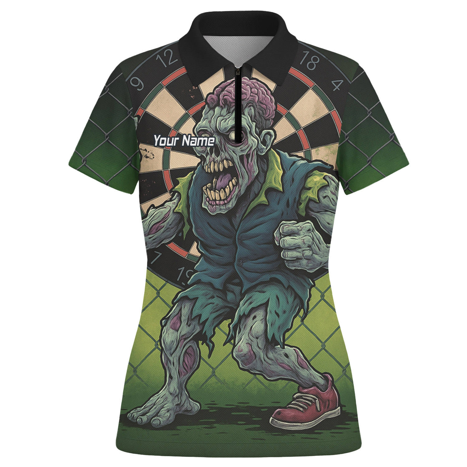 Personalised Zombie Darts Polo Shirt Green Black For Women P6458