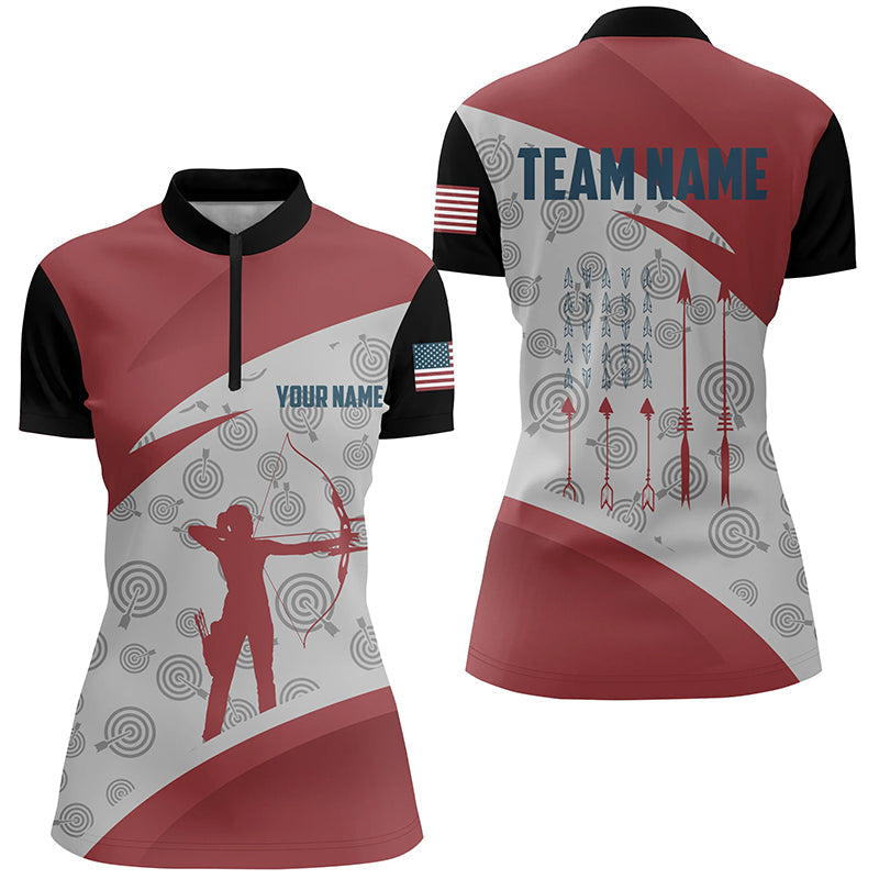 Personalised Archery Jerseys Red Silhouette Polo Shirts For Men and Women, Gifts For Archery Team Lover T0605