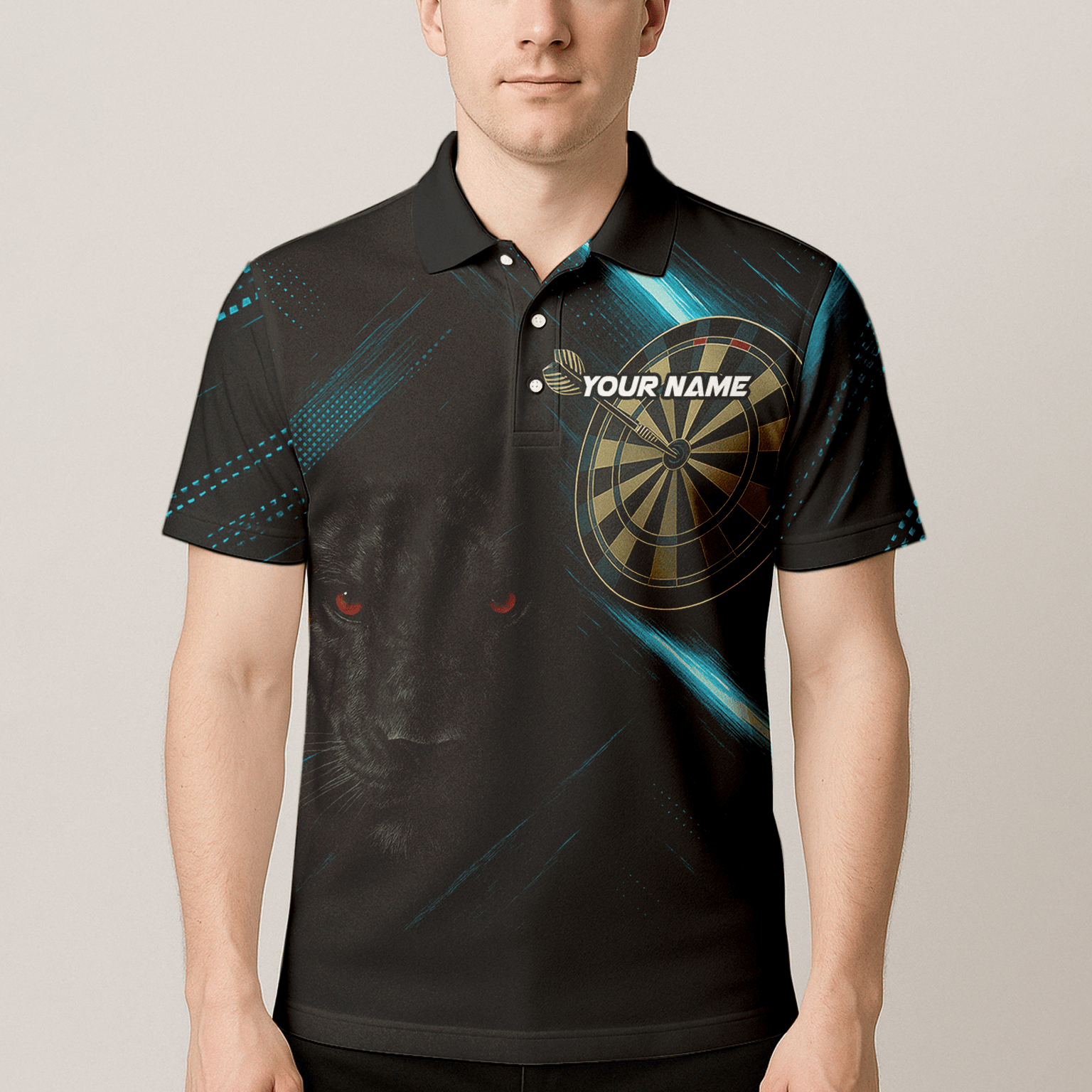 Personalized Black Panther Red Eye Dart Polo Shirt Blue Light Design For Men V5884