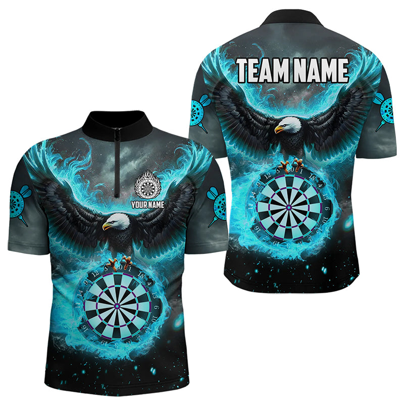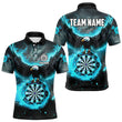Personalised Blue Cyan Fire Flame Dartboard Eagle 3D Men Dart Shirt, Darts League Team Shirt Jersey T3220