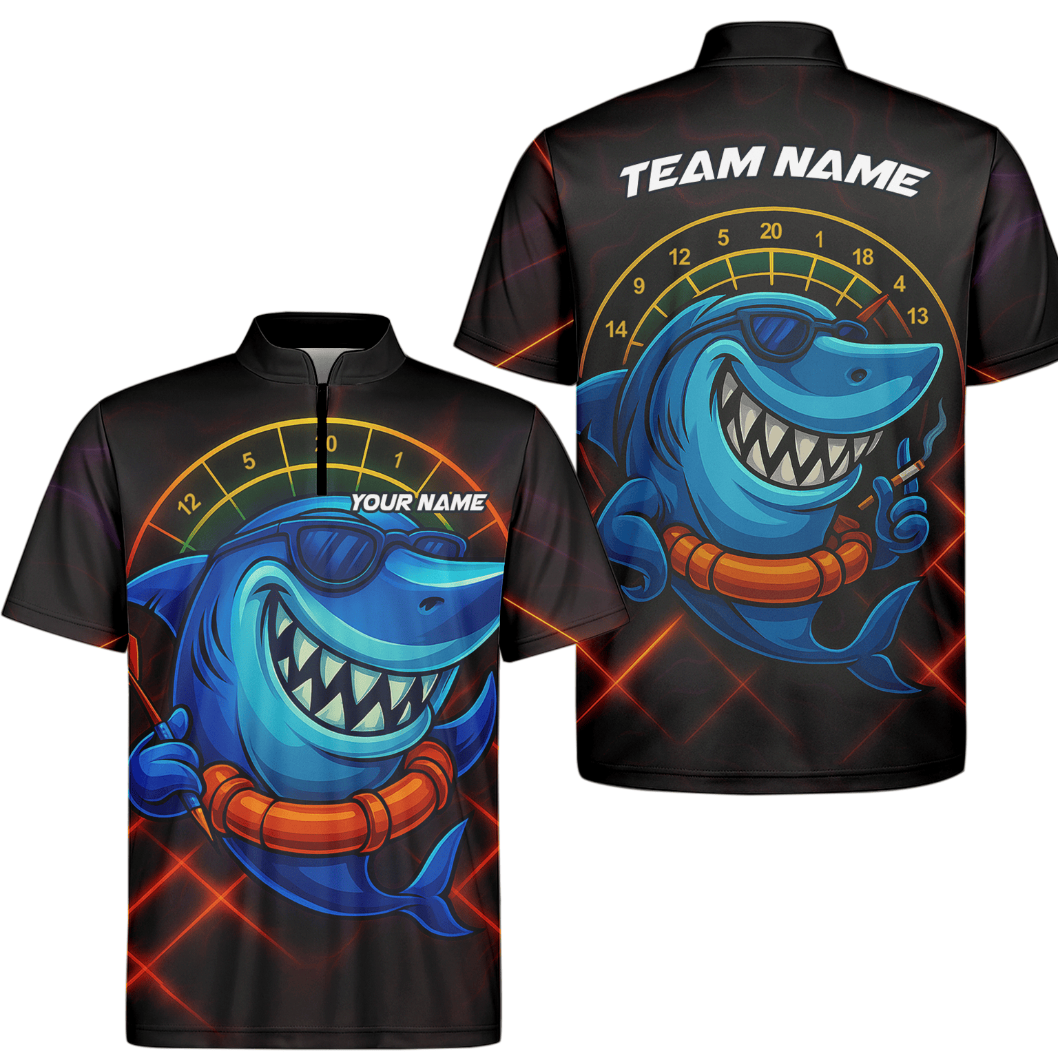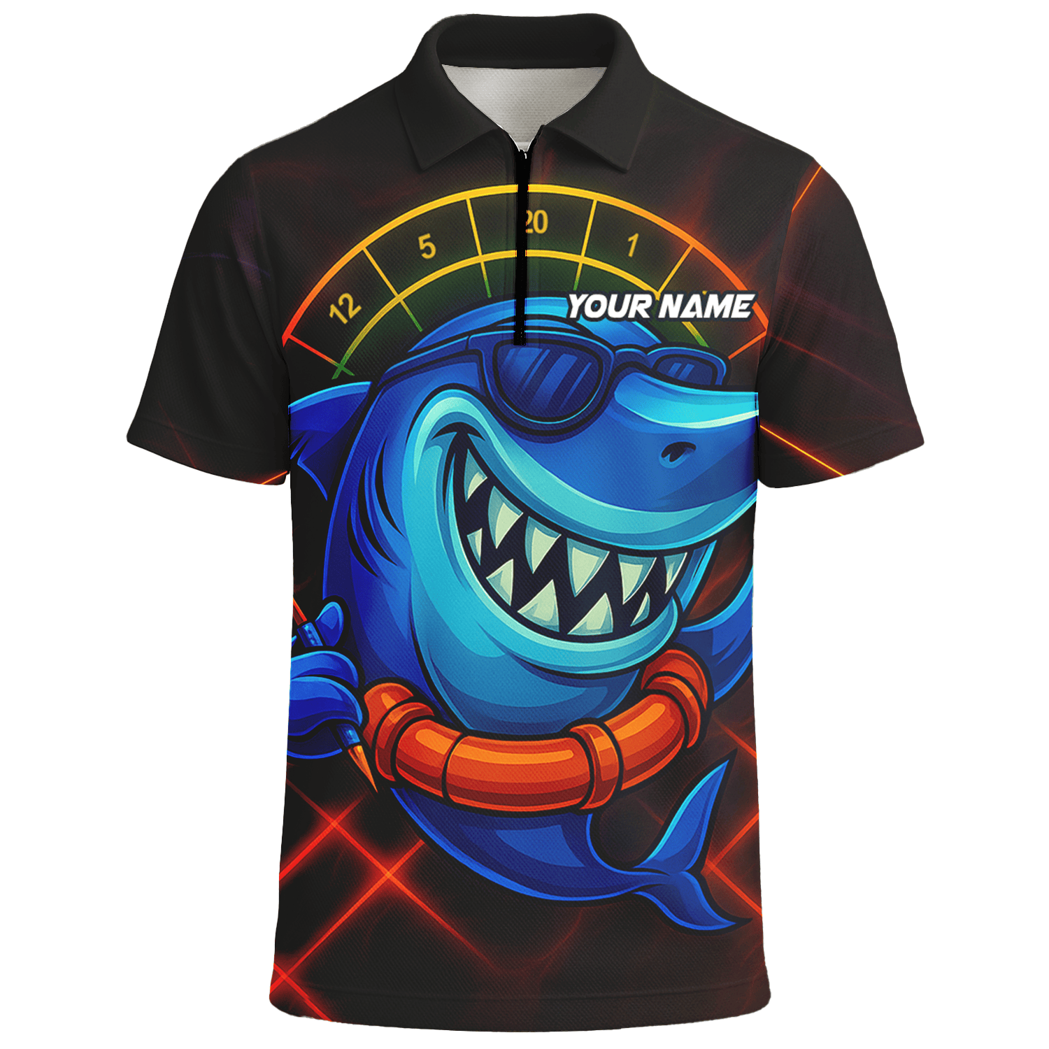 Personalized Cartoon Shark Dart Jersey Custom Name Team Polo Shirt Black Blue For Men L1234