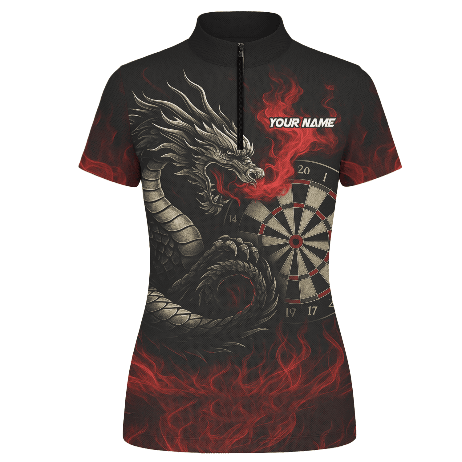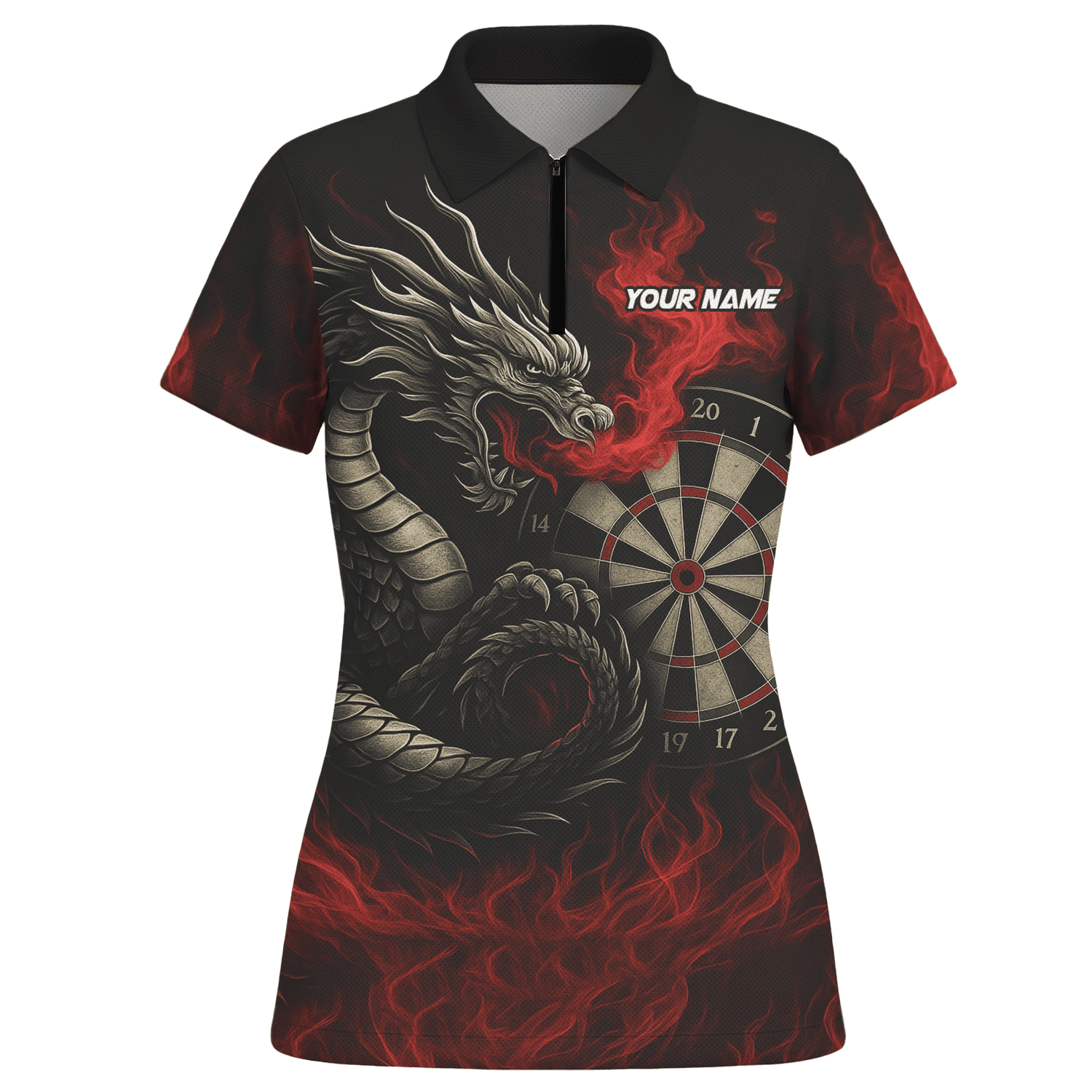 Personalized Fire Dragon Dart Polo Shirt Black Red For Women B3964