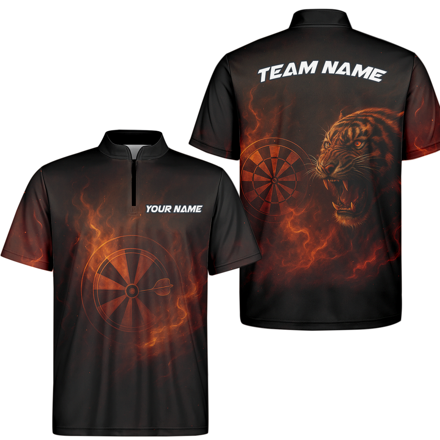 Personalized Fire Tiger Dart Jersey Custom Name Team Black For Men D5503