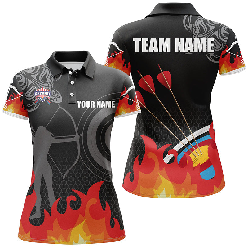 Personalised Flame 3D Target Archery Silhouette Archer Polo Shirts For Men and Women, Custom Archery Shirts V0624