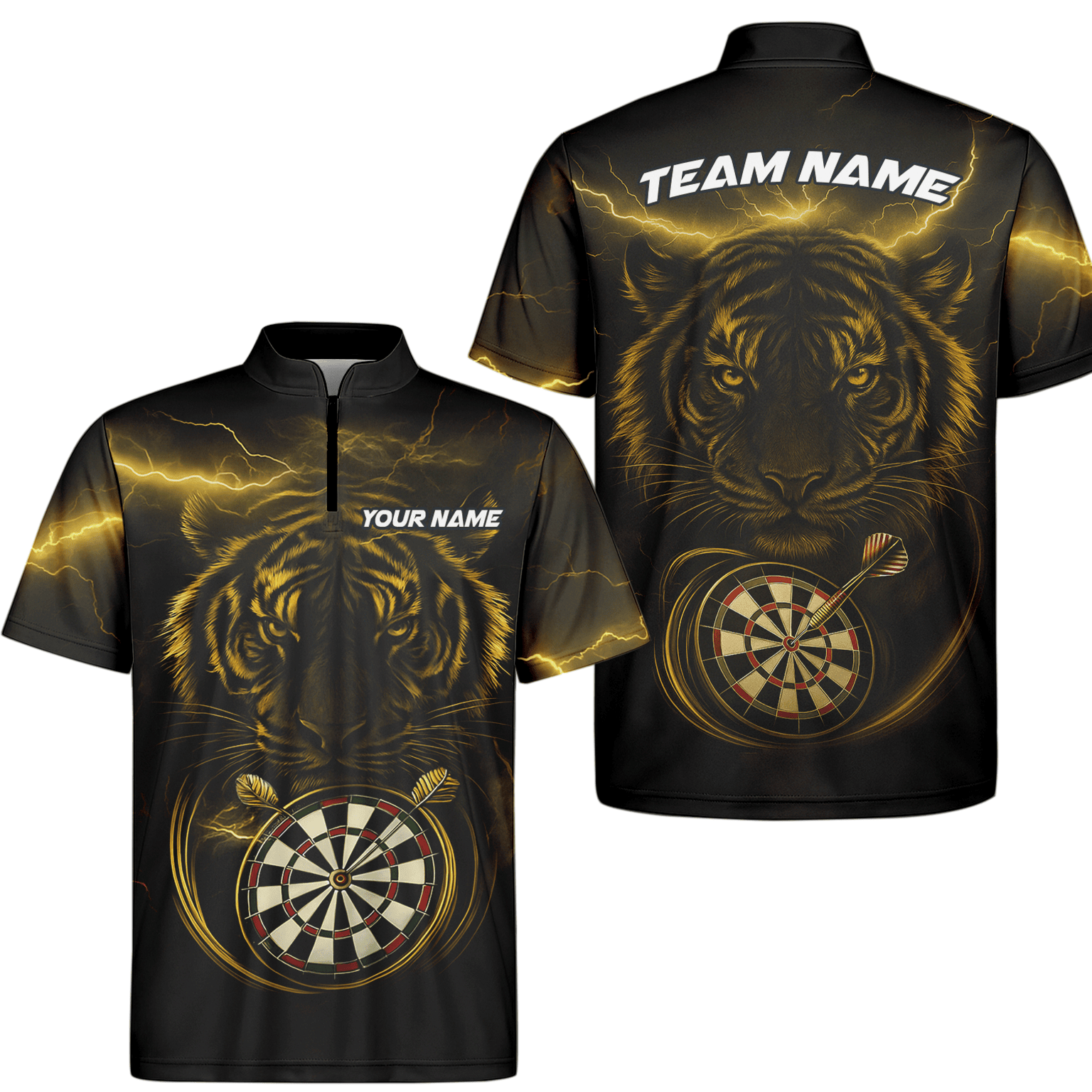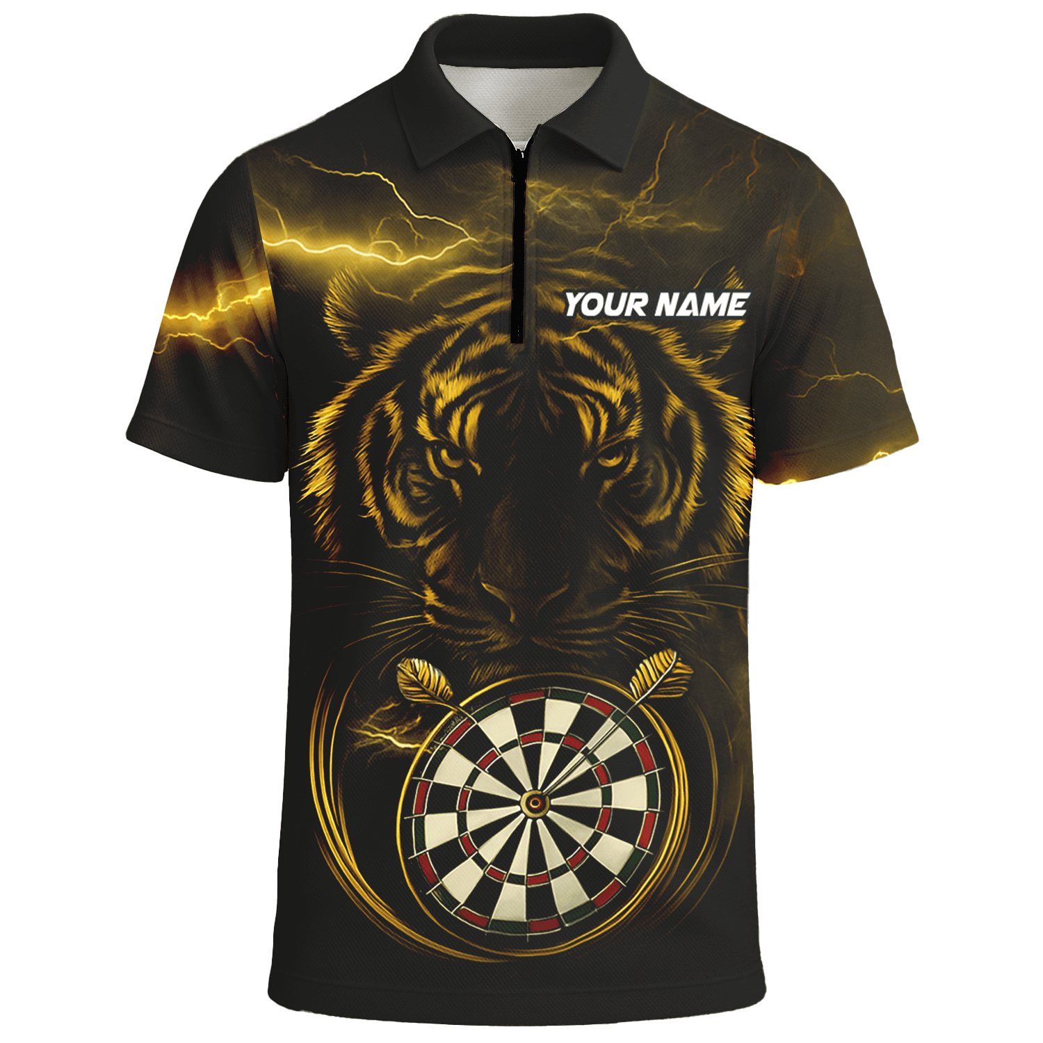 Personalized Gold Lightning Tiger Dart Polo Shirt Black for Men N4631