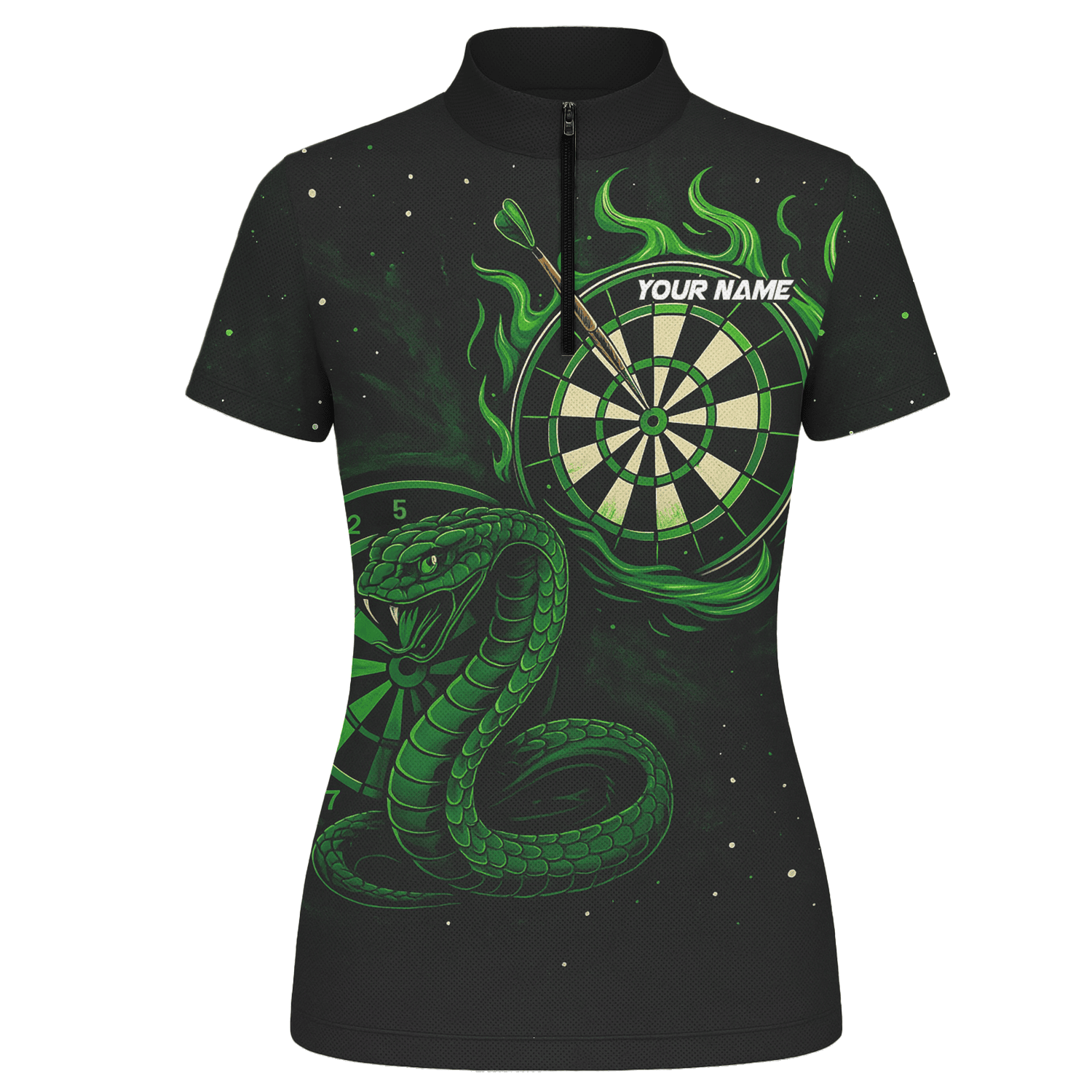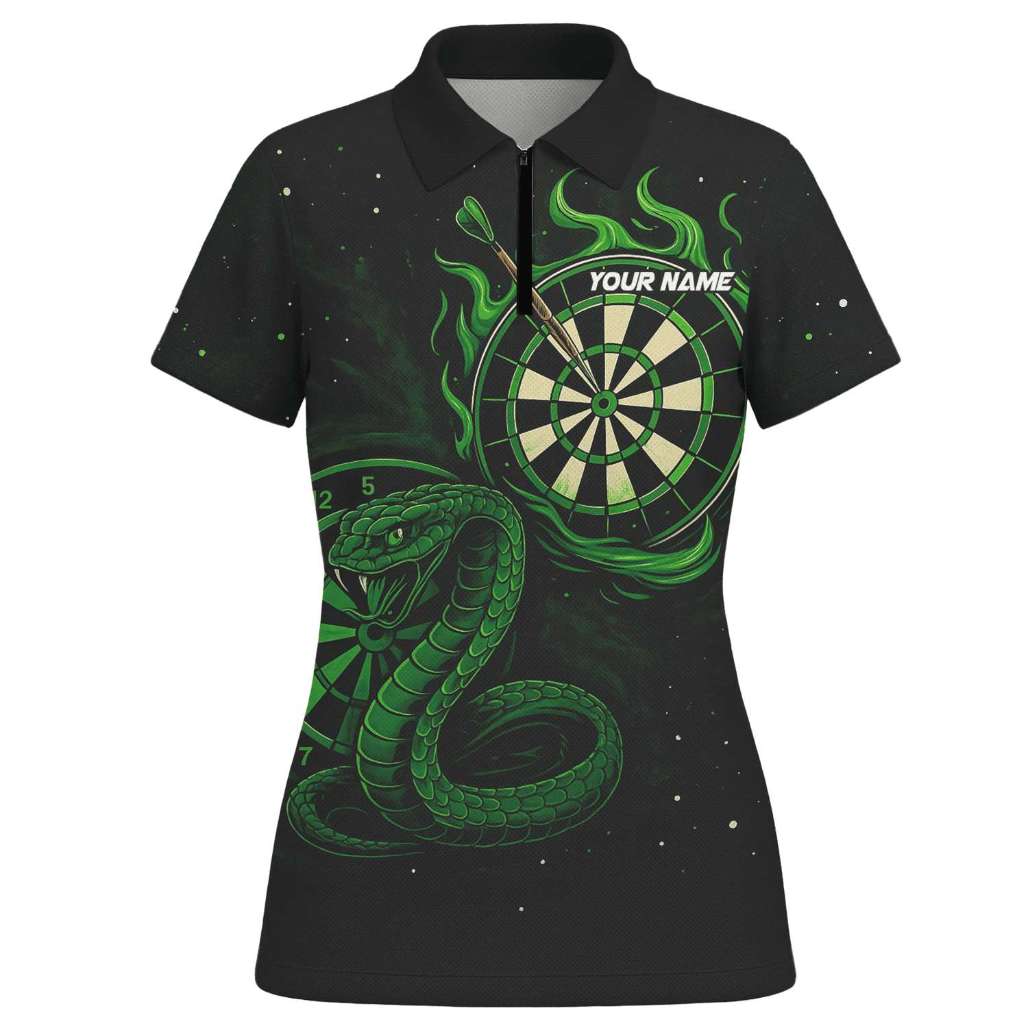 Personalized Green Flame Cobra Dart Polo Shirt Black For Women P6781