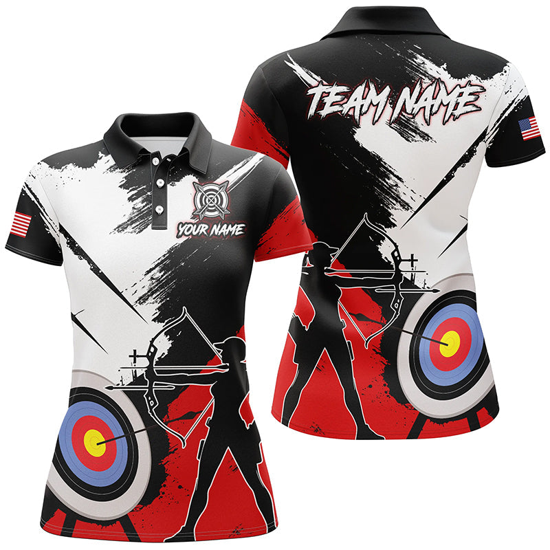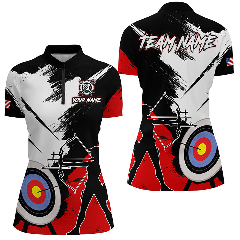 Personalised Grunge Archery Polo And 1/4 Zip Shirts For Men and Women Custom Archery Team Jerseys |Red T2054