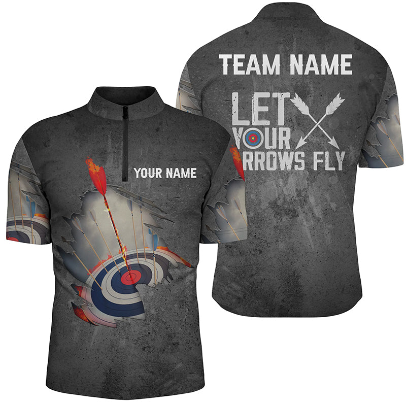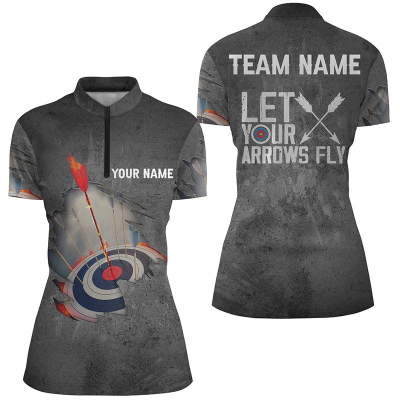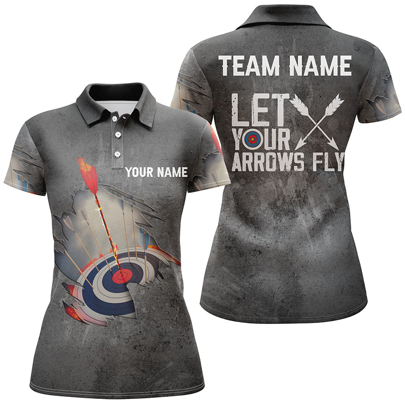 Personalised Let Your Arrows Fly Archery Polo Shirts For Men and Women Flaming Arrow 3D Target Archery Shirts V0656