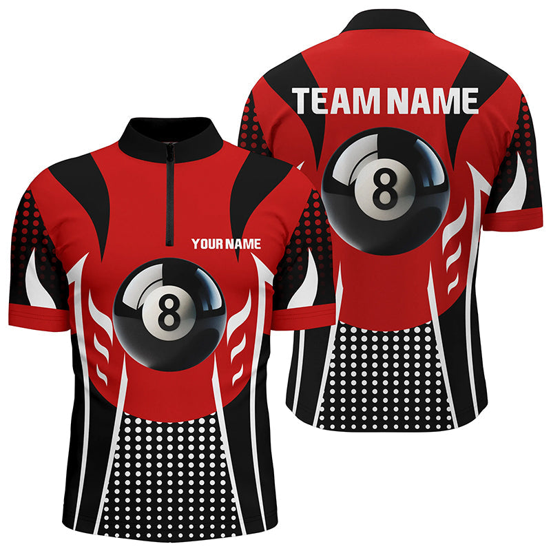 Men's Red Black 8 Ball Billiard Quarter-Zip Shirt V1037