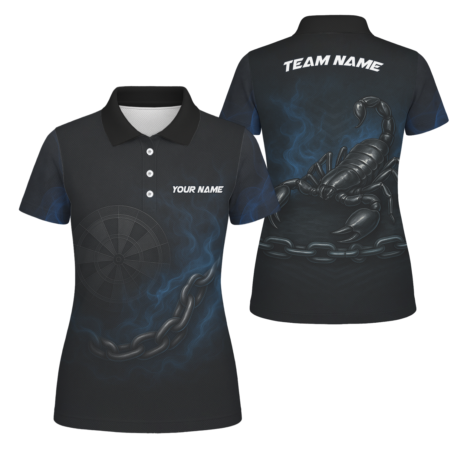 Personalized Scorpion Black Blue Darts Jersey Shirt Polo For Women V9256