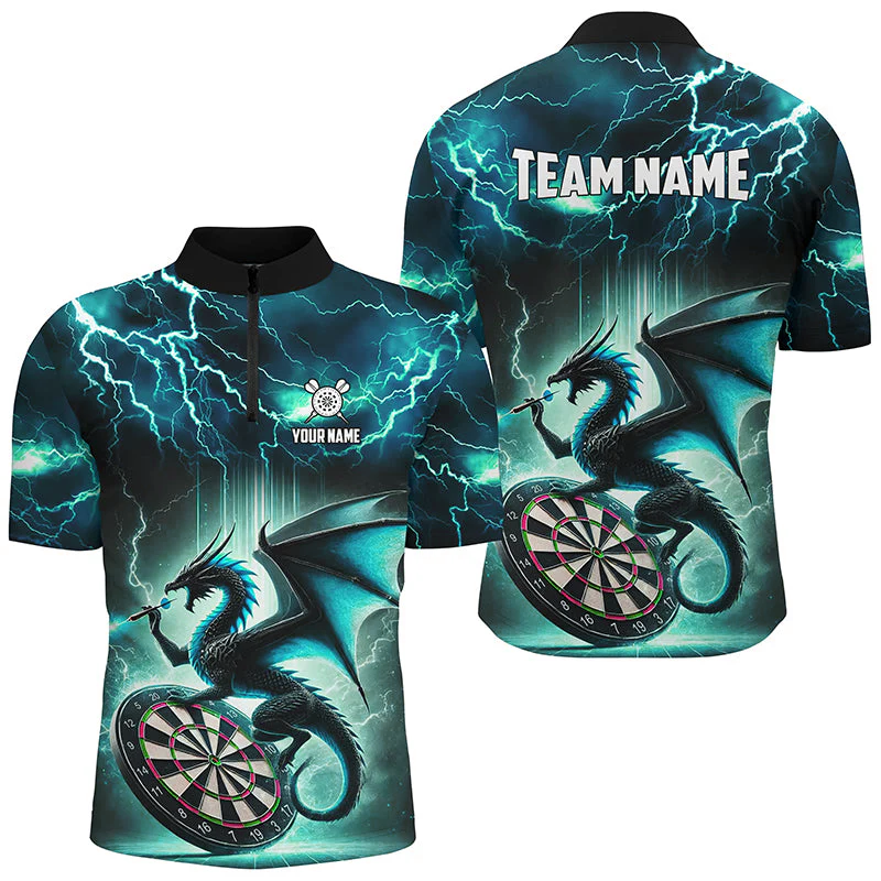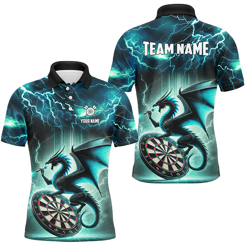 Men's Lightning Thunder Dragon Turquoise Darts Polo & 1/4 Zip Shirts For T24762