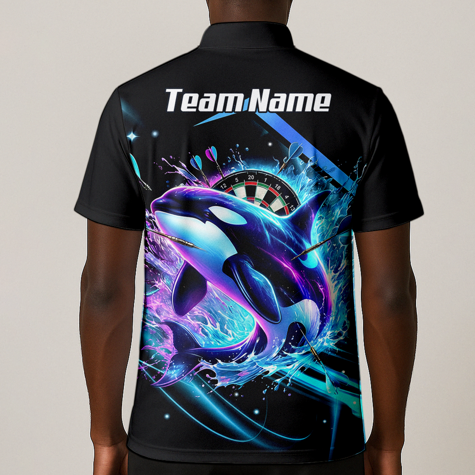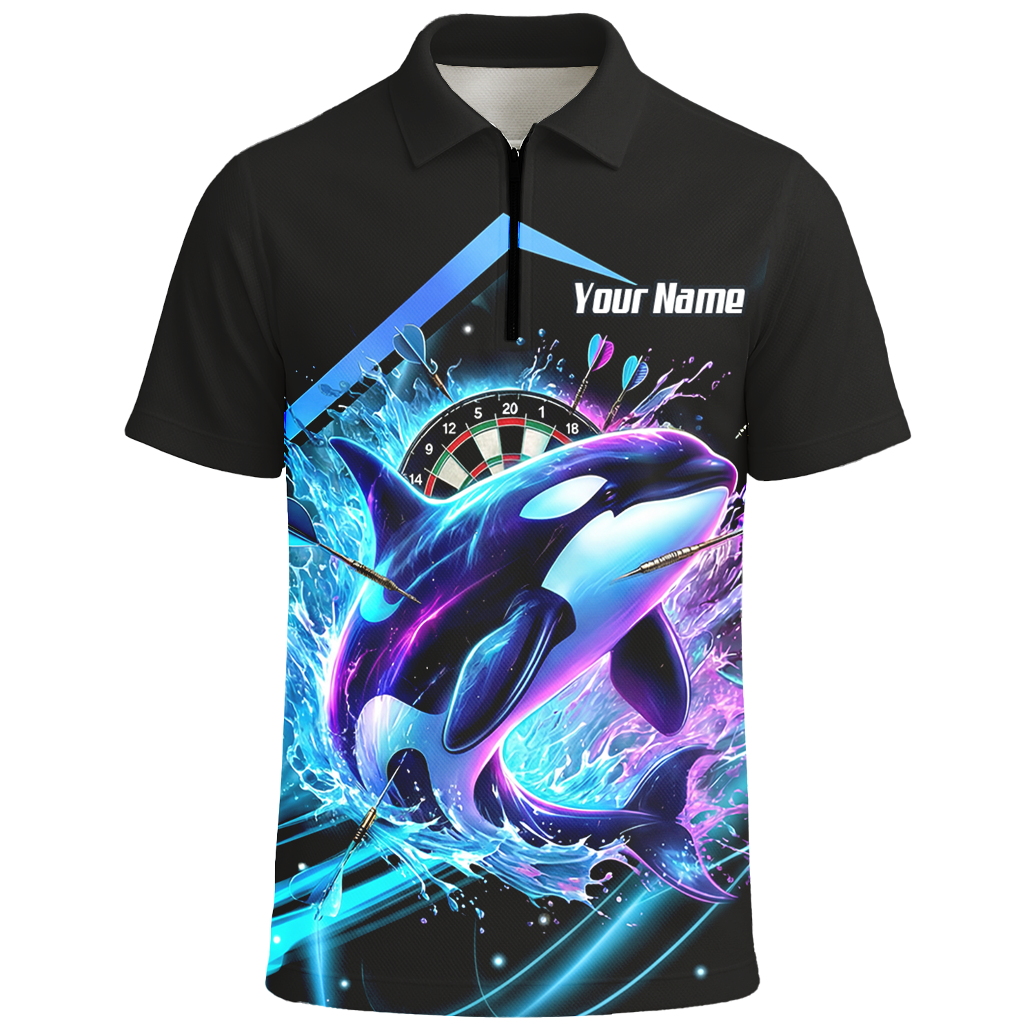 Personalised Black 3D Orca Dart Shirt – Neon Wave Design with Name & Team Customisation TH9379